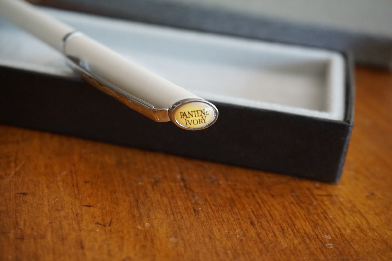 - Vintage Quill Ballpoint Pen Pearl White Chrome Original Box Pantene Ivory Promo