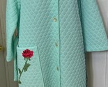 - Vintage Quilted Nylon Robe Baby Blue Rose Applique Full Length Sz 40 Cottagecore