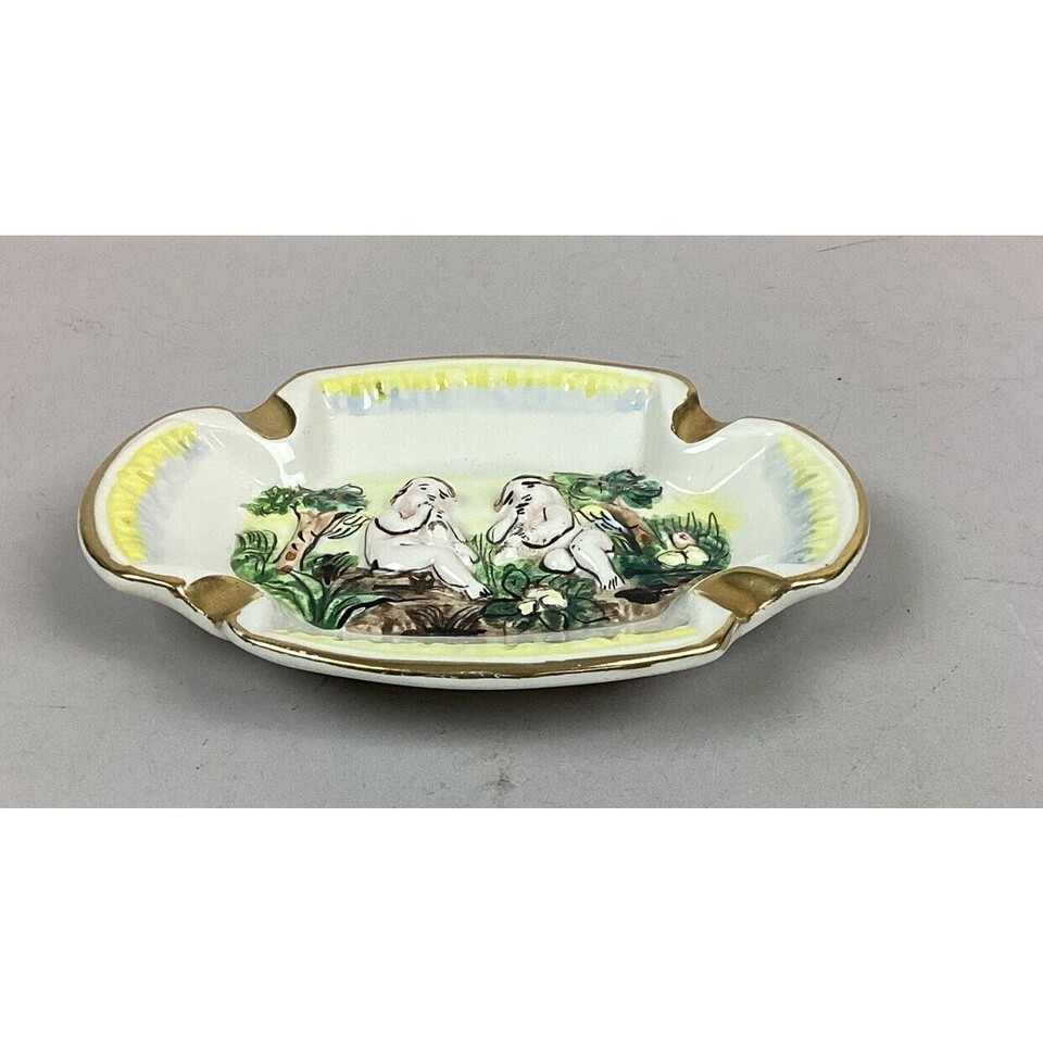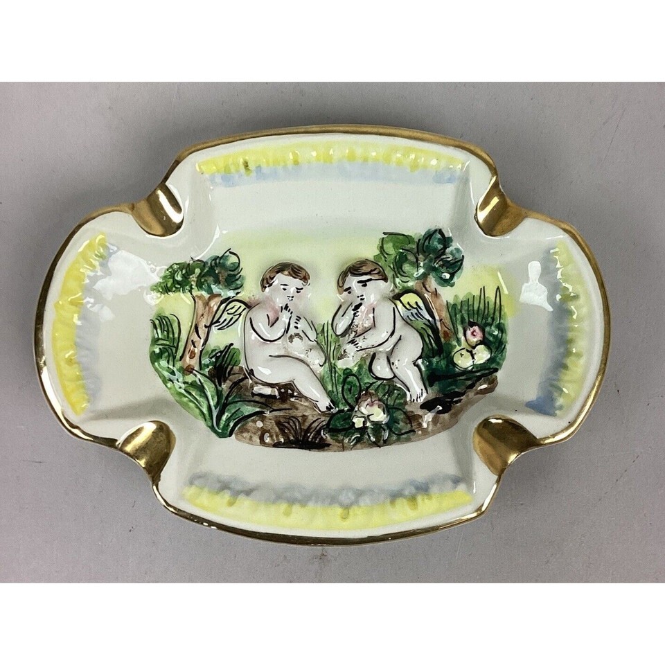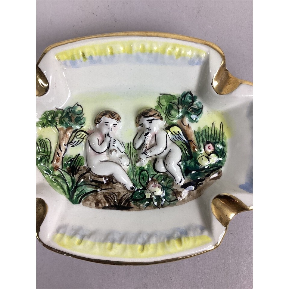 - Vintage R Capodimonte Italy Cherub Ashtray With Gilded Accents