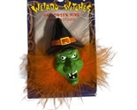 Vintage RUSS Lapel Pin Brooch Halloween Green Witch Purple Feather Hair EUC