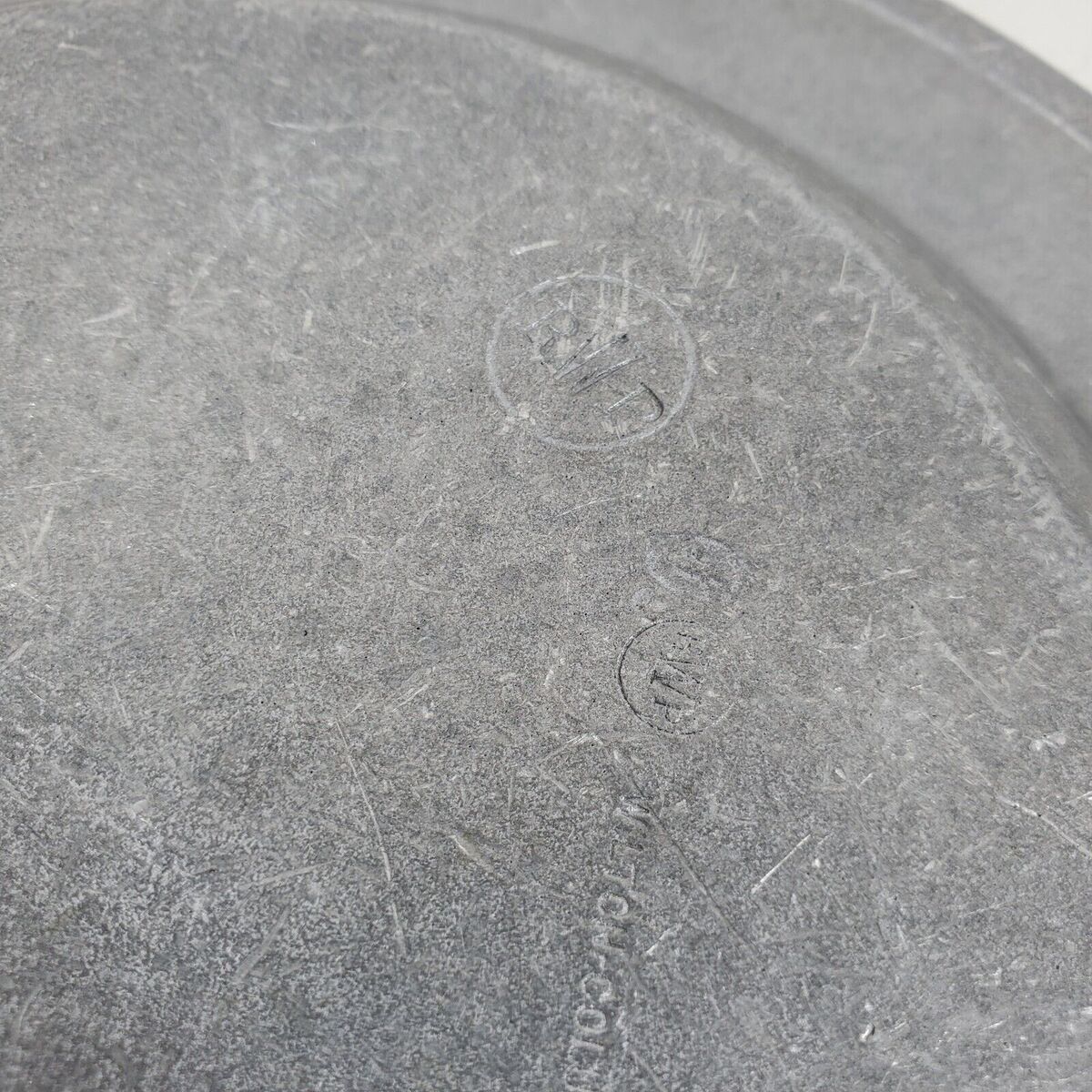 This vintage RWP Wilton Columbia bowl is a unique addition to any collection. Made of pewter in the United States, it features a charming design of a loaf of bread and a jug of wine. The bowl measures 9.5 inches and is perfect for display or everyday use. The brand, Wilton, is known for its quality metalware and this antique piece is no exception. Whether you're a collector or simply looking for a one-of-a-kind piece, this bowl is sure to impress.