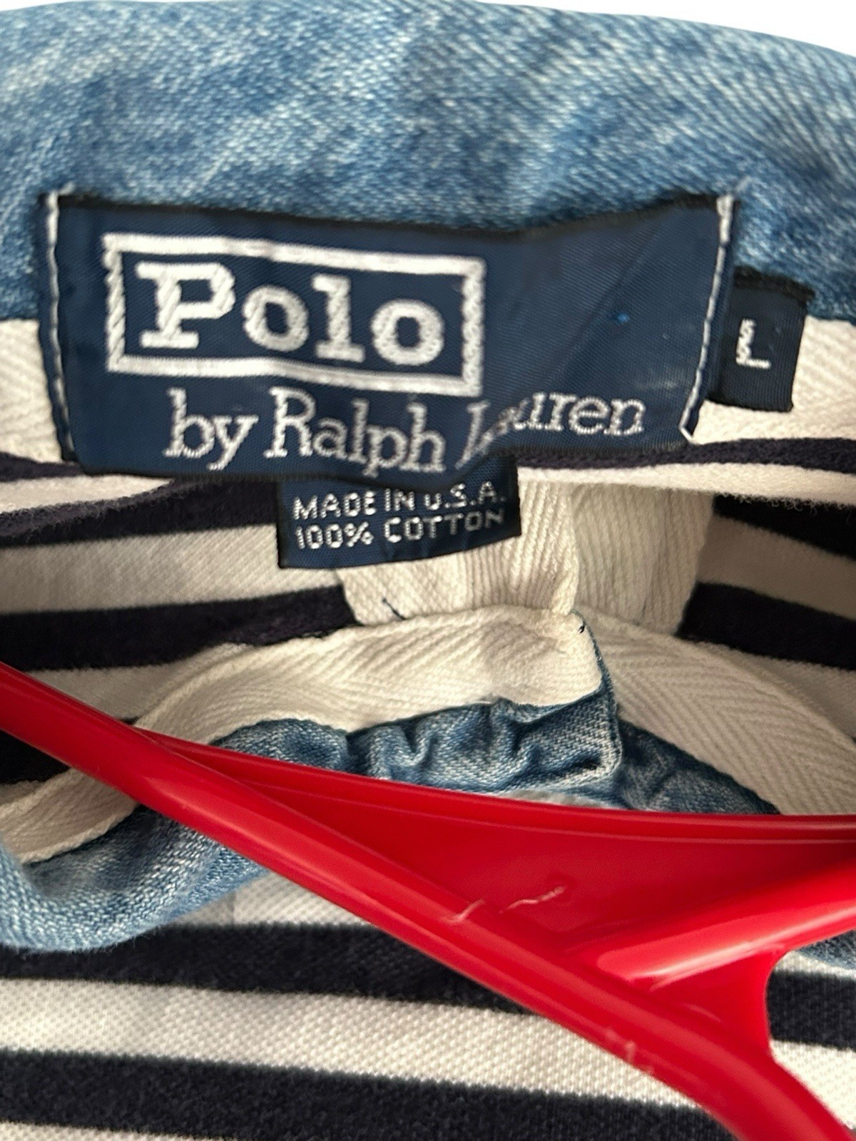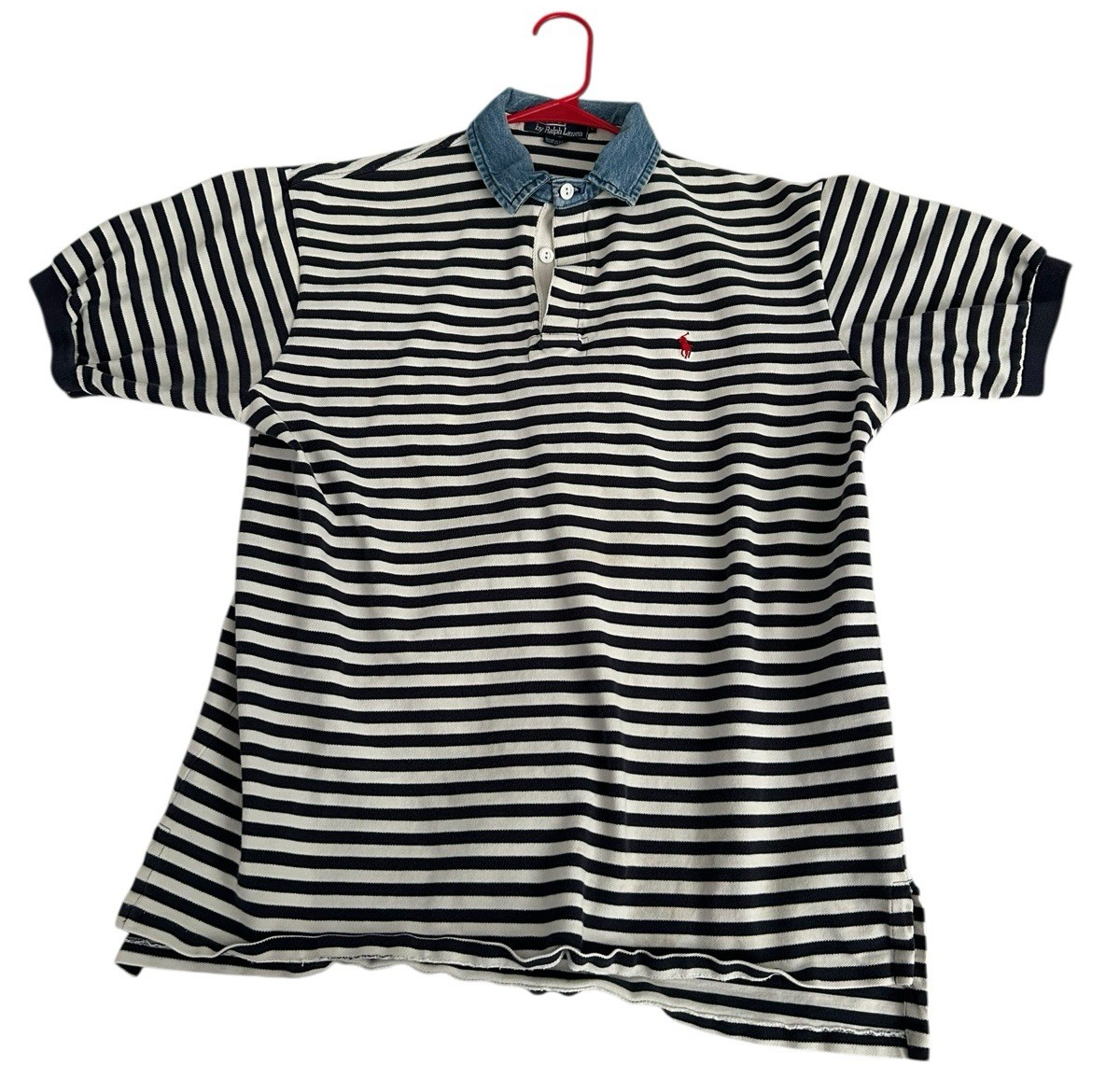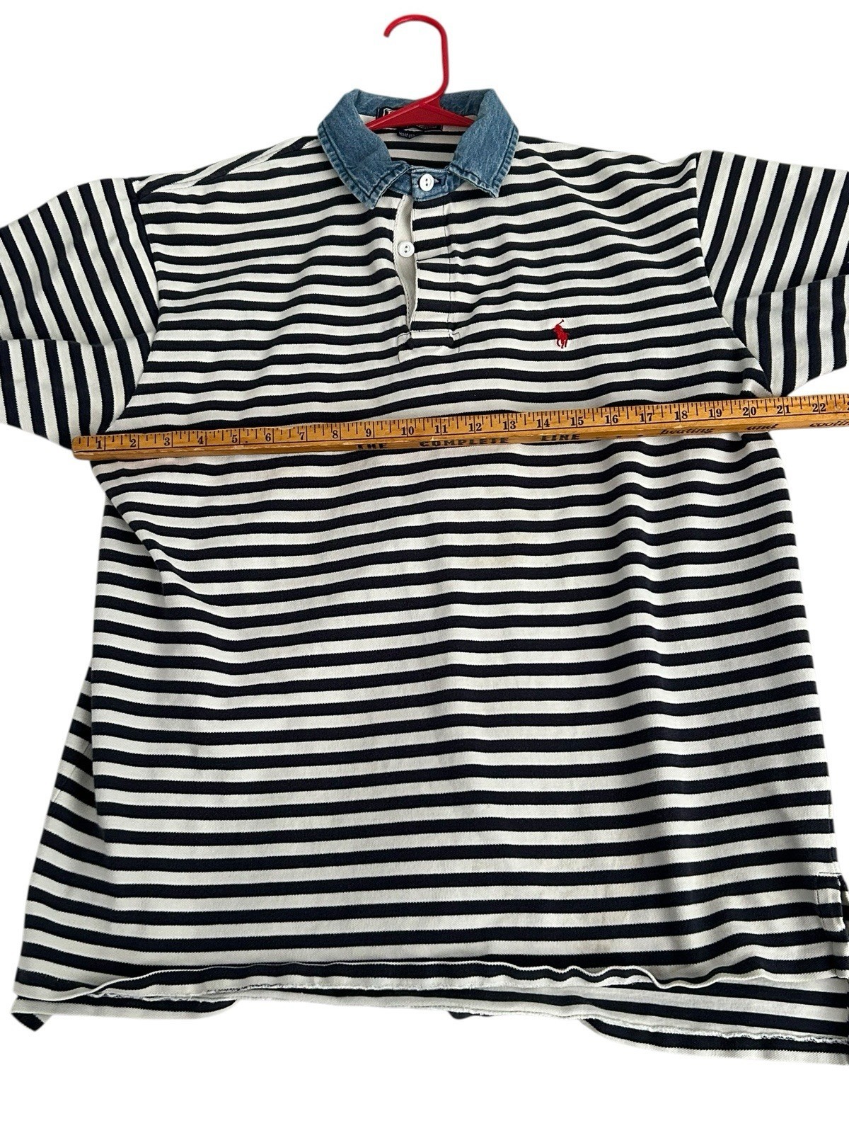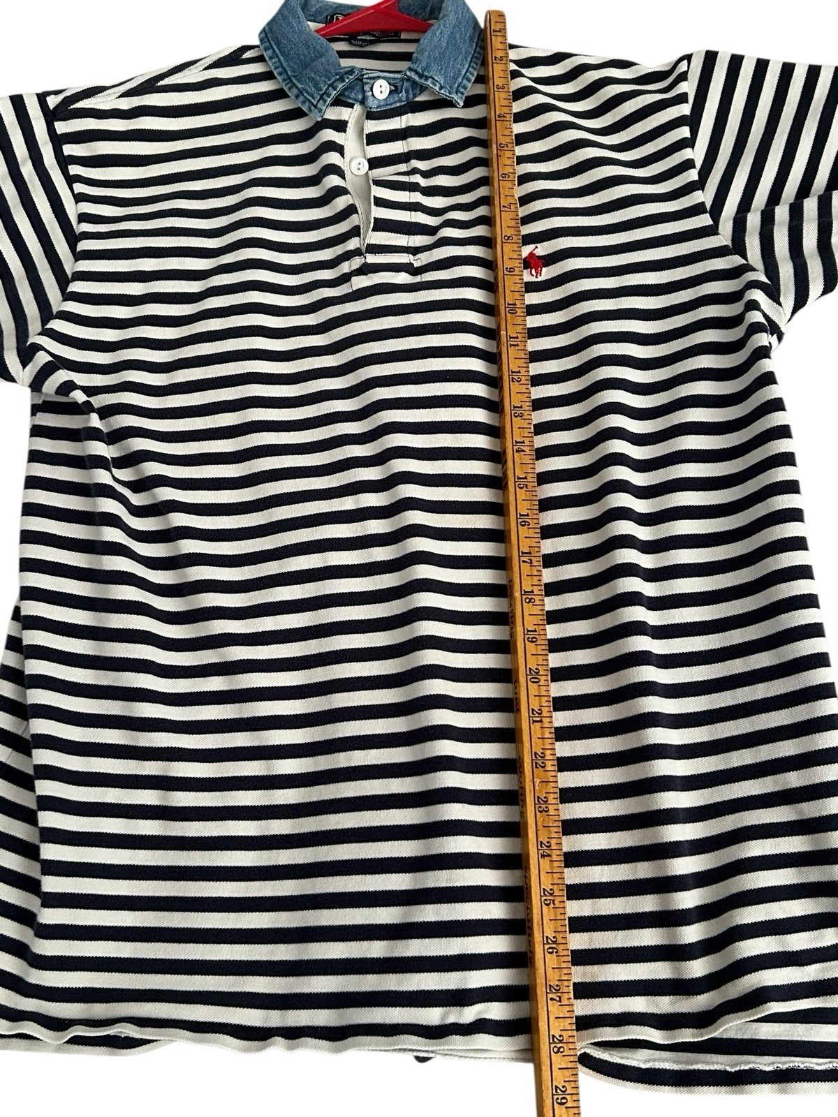 - Vintage Ralph Lauren Polo Shirt Mens L Blue Denim Collar Striped Red Pony Sailor