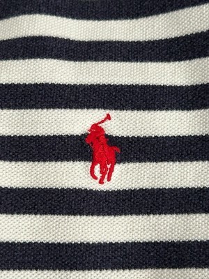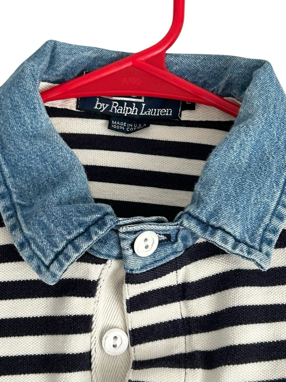Vintage Ralph Lauren Polo Shirt Mens L Blue Denim Collar Striped Red Pony Sailor