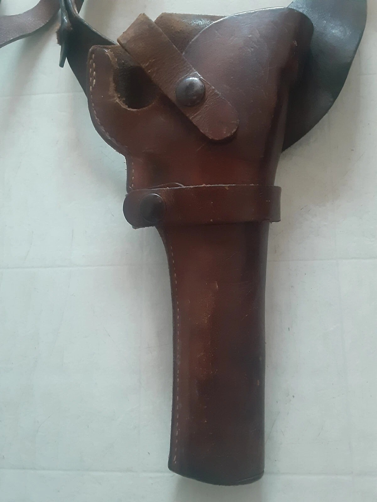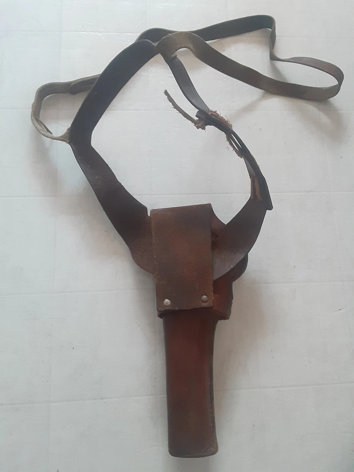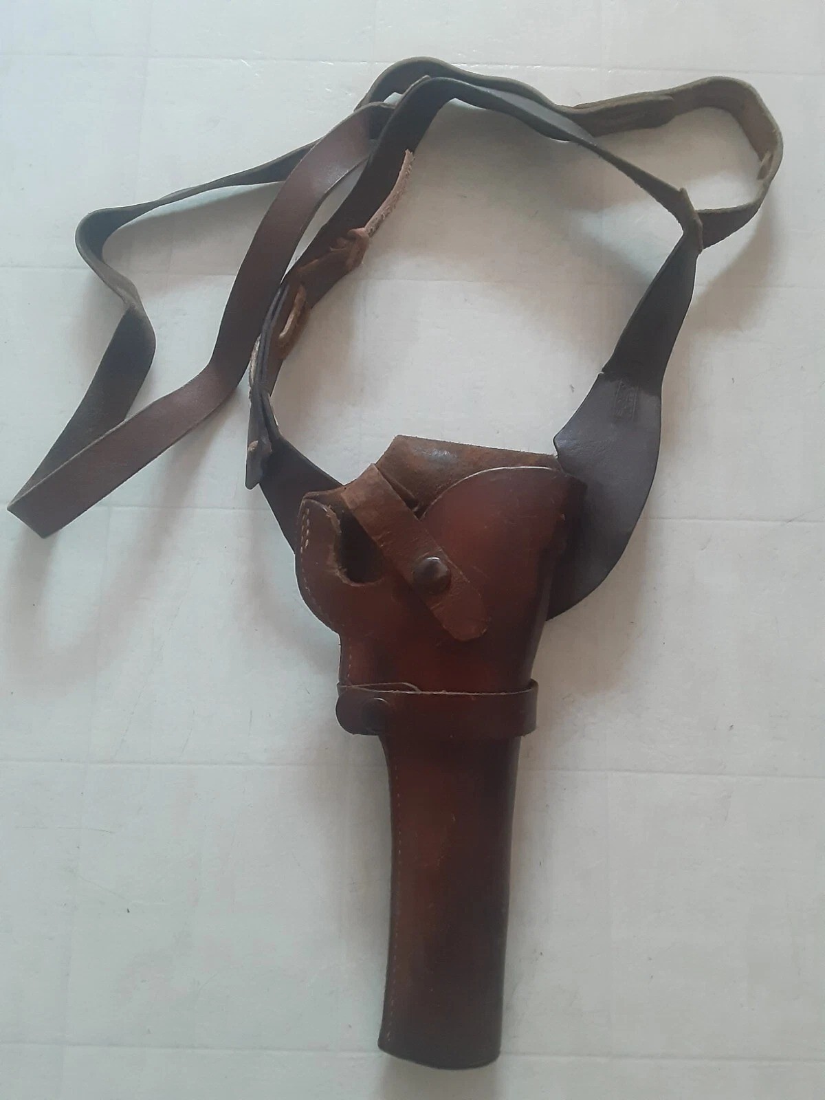 Vintage Item, according to our research we believe the holster is pre 1950's but we are far from experts, holster is in good shape for its age. Does have one flaw a tear in the leather by the actual holster. Leather needs to be oiled. Shoulder strap has the Myres stamp, the holster is not stamped (we are not certain if it is a Myres). Please see pictures and ask any questions.