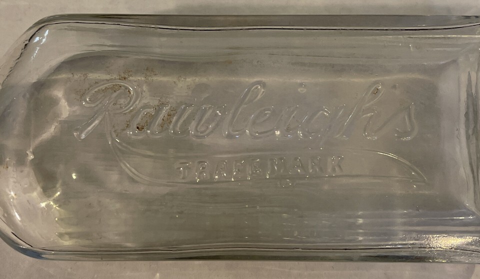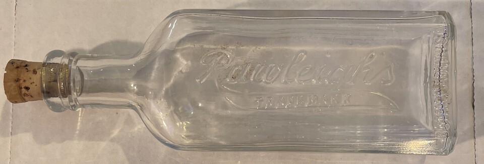 - Vintage Rawleigh’s Trade Mark Aqua Glass Bottle 6 1/4” Tall With Cork