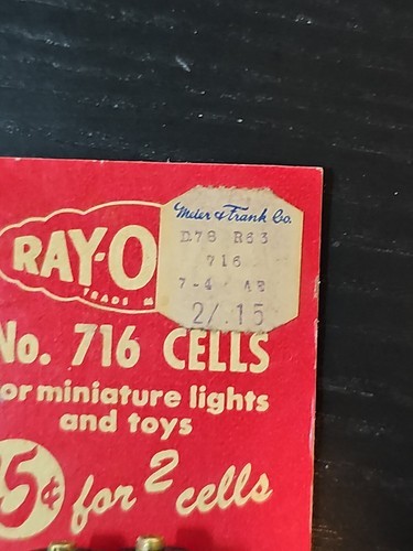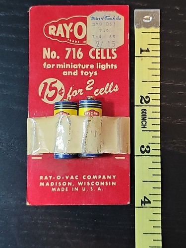 - Vintage Ray-O-Vac No. 716 Cells Batteries On Card---For Miniature Lights & Toys