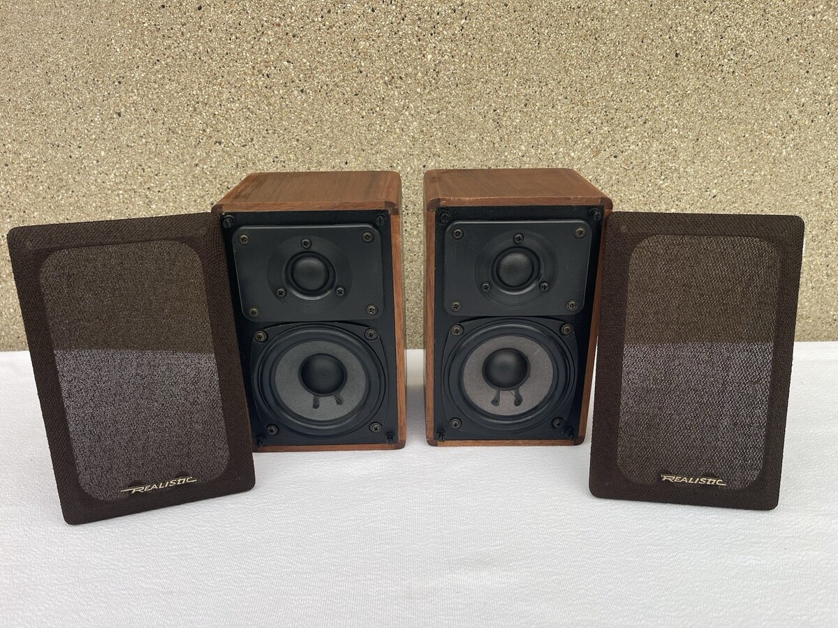 - Vintage Realistic Minimus 7W Speakers Cat No 40-2039C Walnut Wood 8 Ohms 40W Max