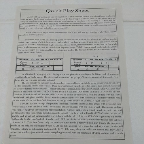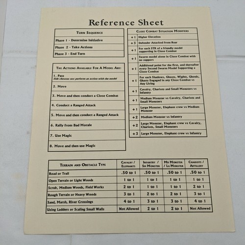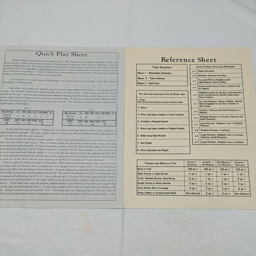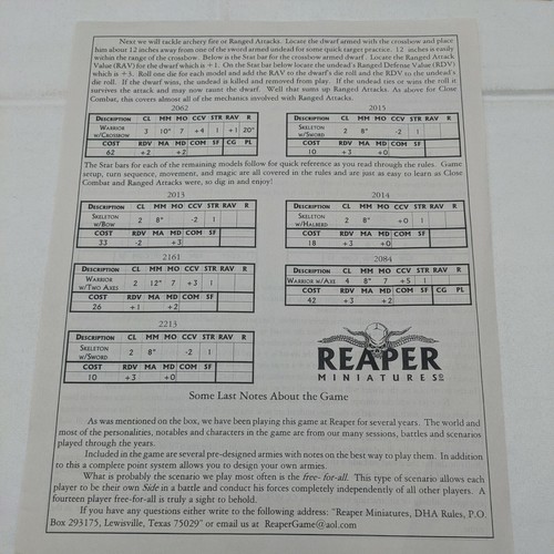 Vintage Reaper Miniatures Reference Sheet And Quick Play Sheets. Combined Shipping (for USA Customers Only)