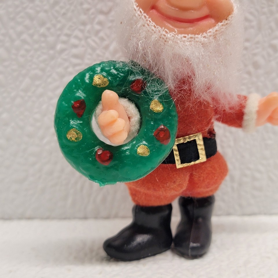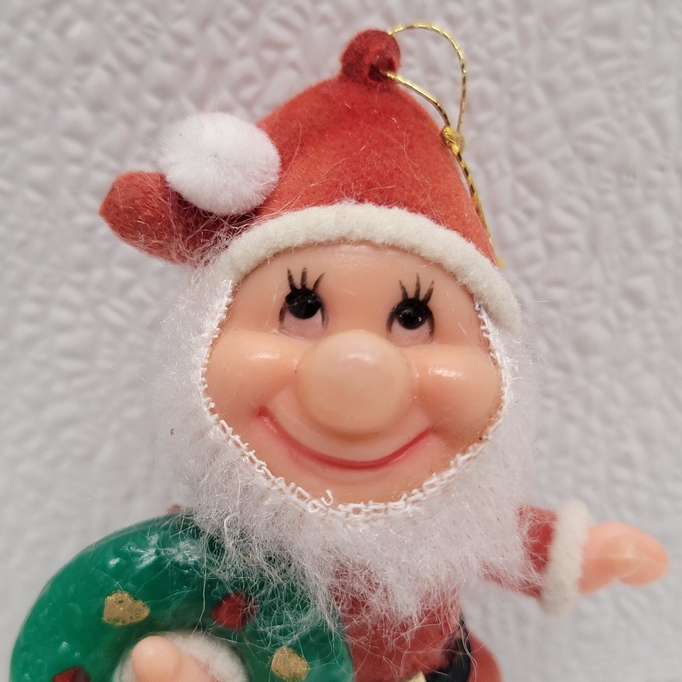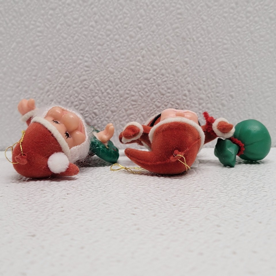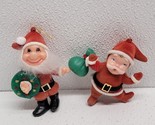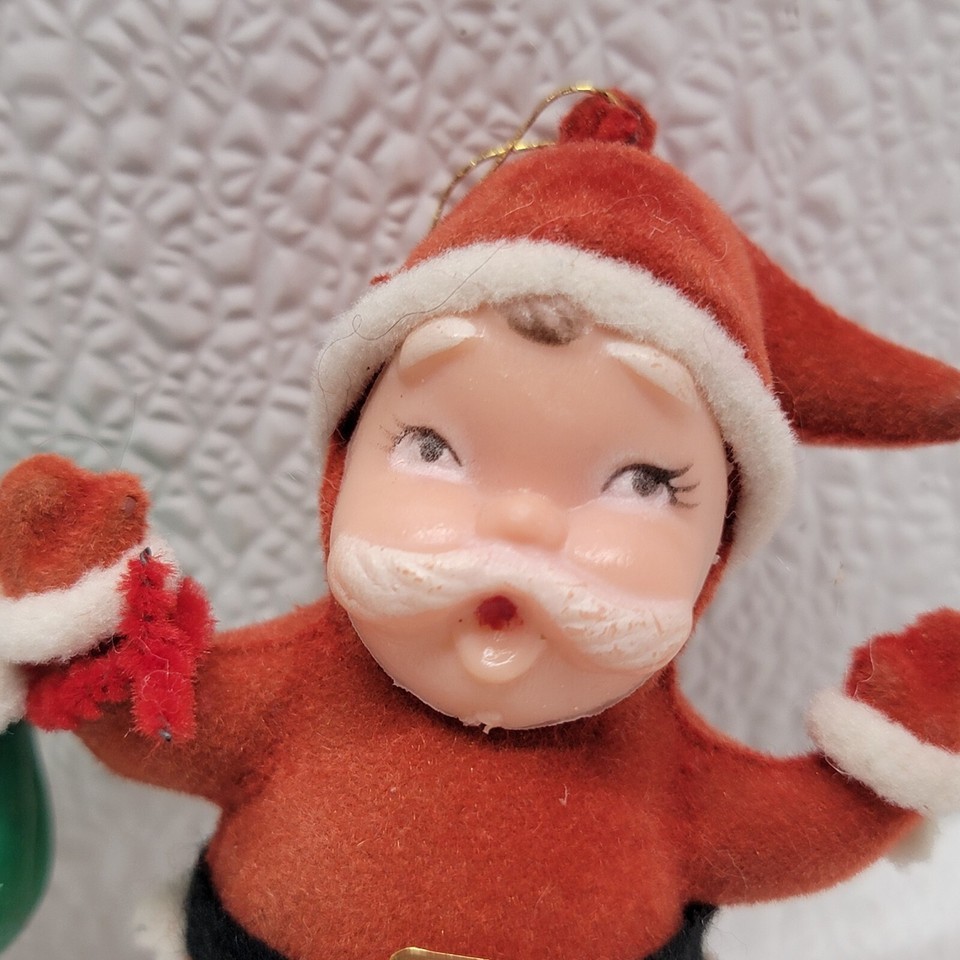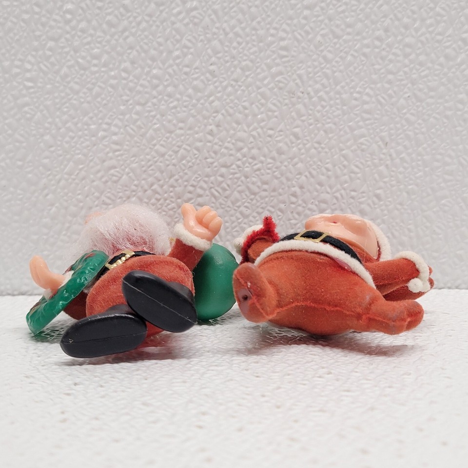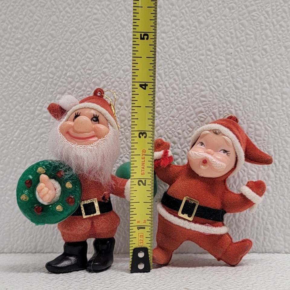 Vintage Red Flocked Santa Claus Christmas Ornaments Set Of 2. Images show actual item that will ship.