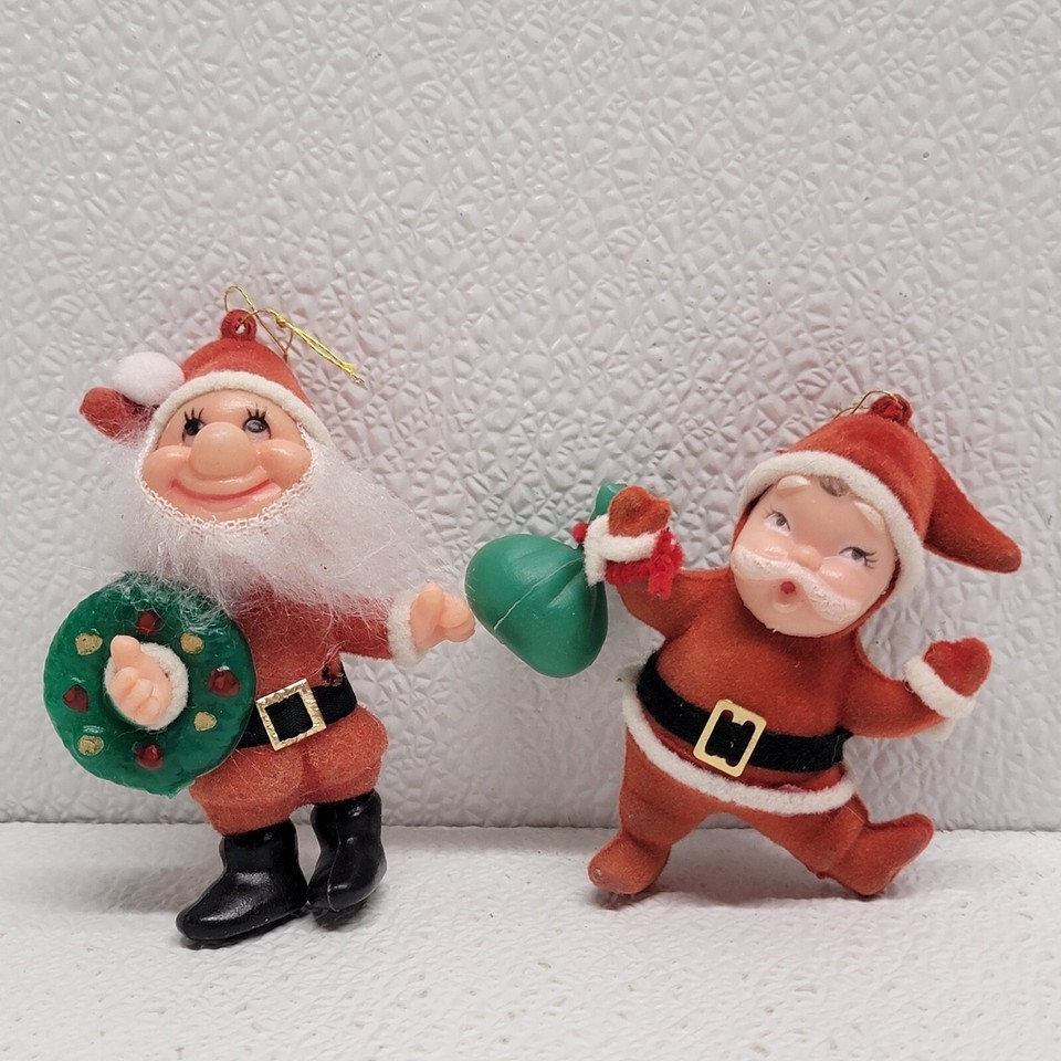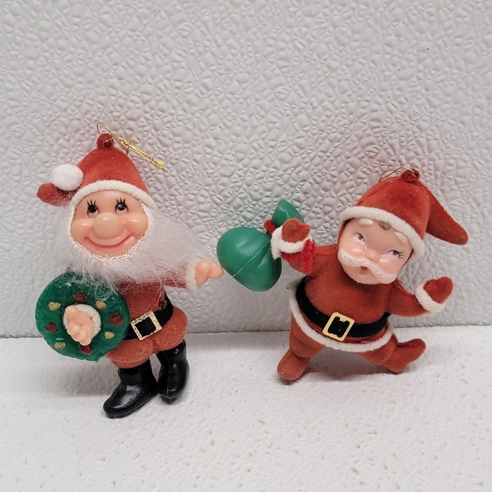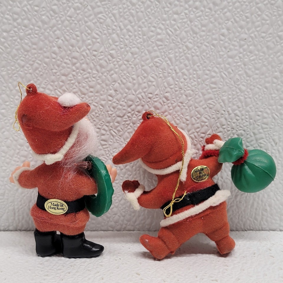 - Vintage Red Flocked Santa Claus Christmas Ornaments Set Of 2