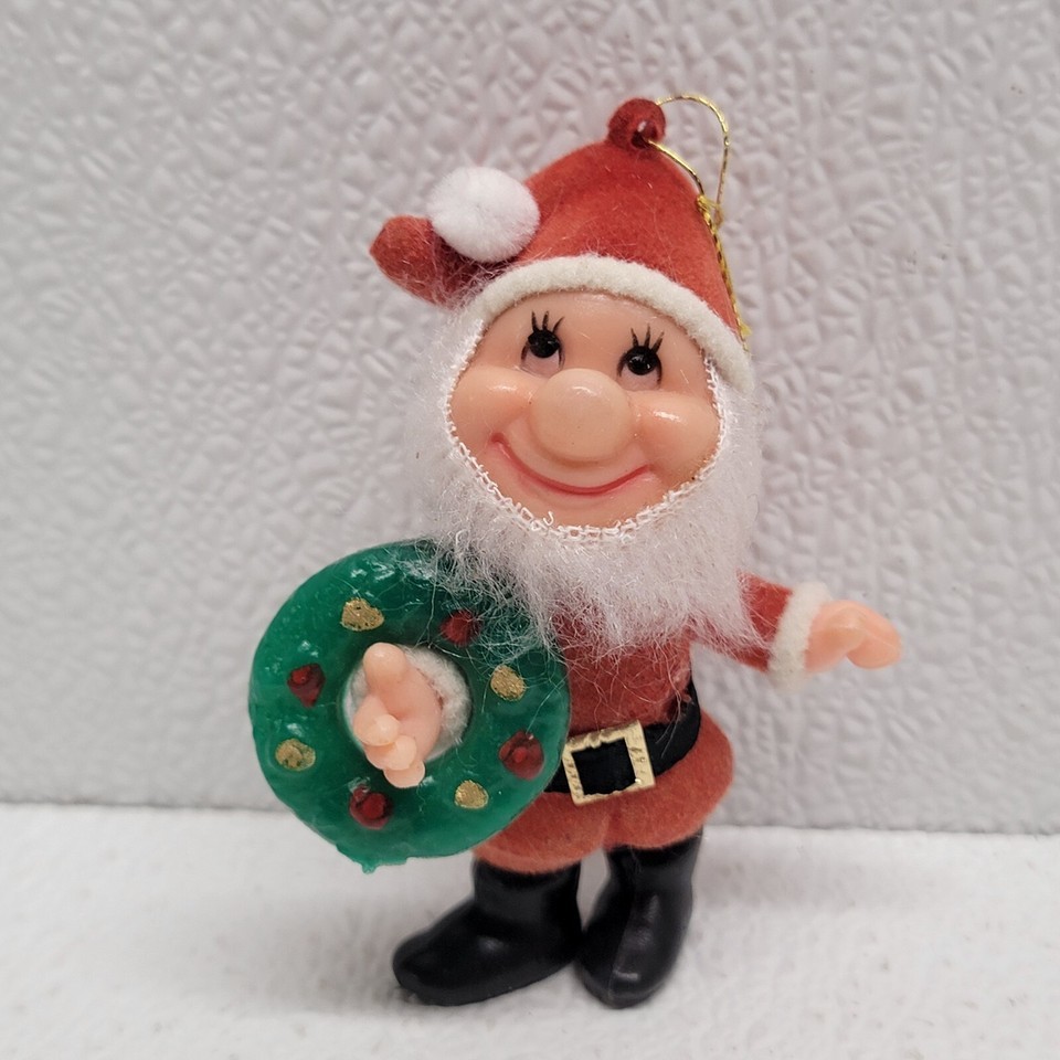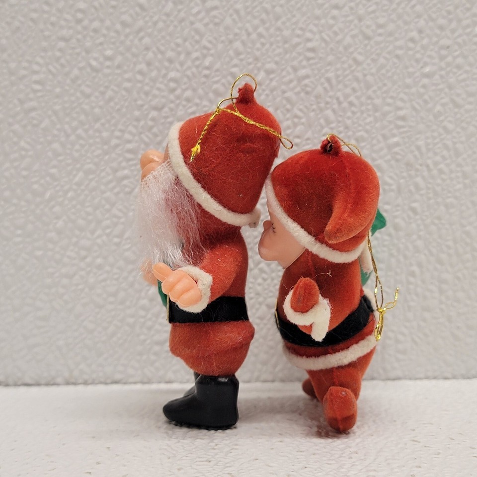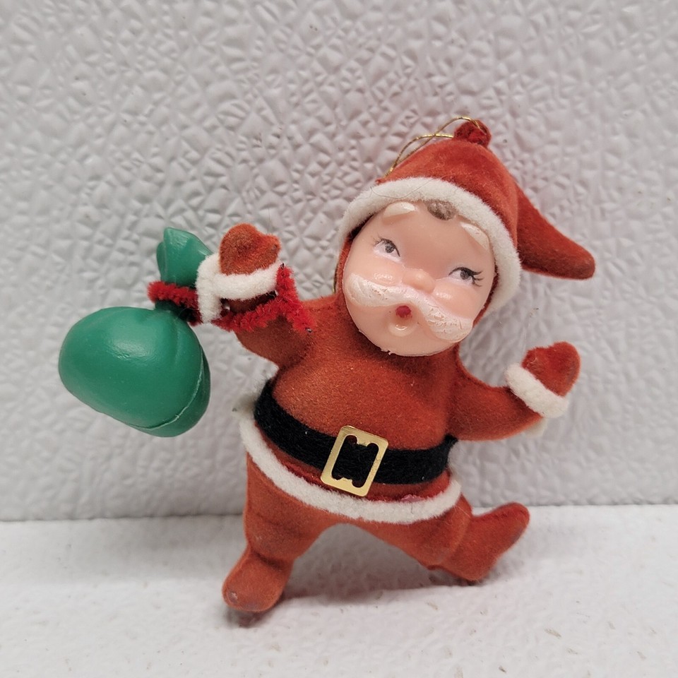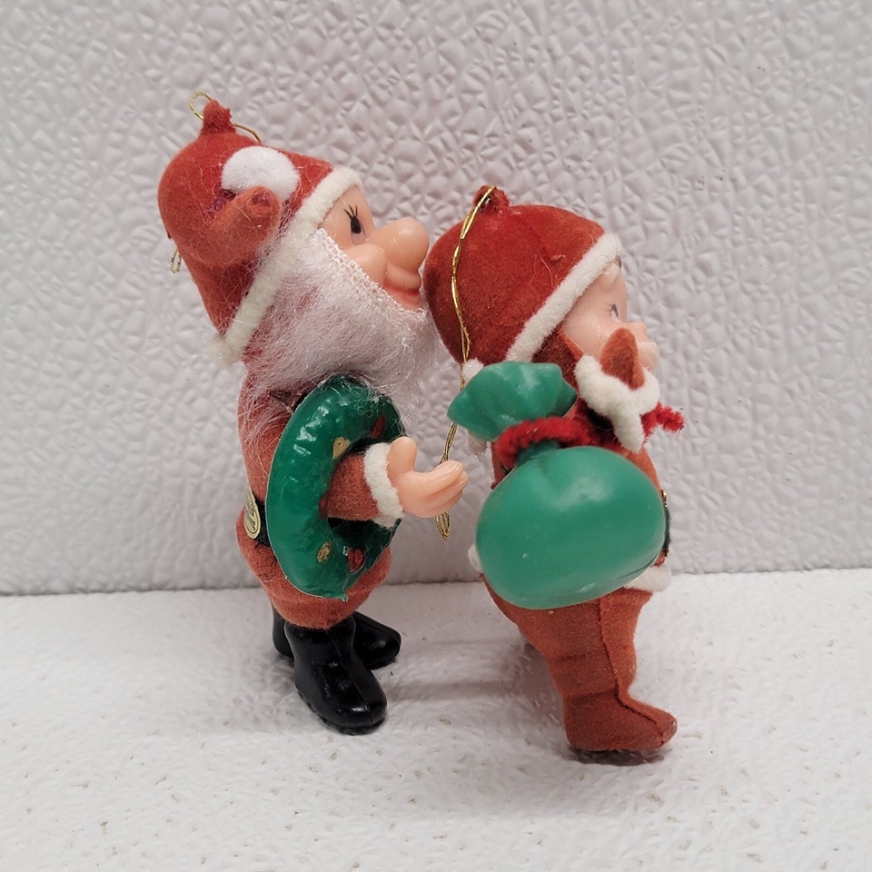 - Vintage Red Flocked Santa Claus Christmas Ornaments Set Of 2