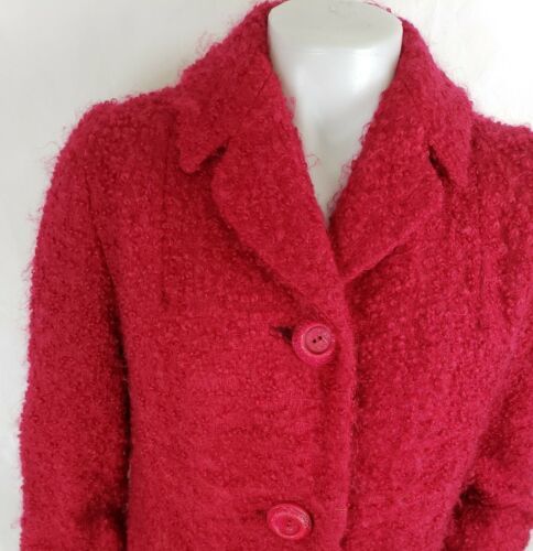Vintage Red Mohair Wool Boucle Coat Womens S Nubby Jack Bloom Bracelet Sleeve