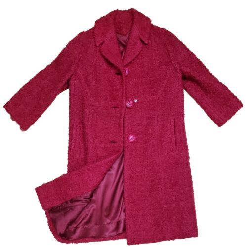 - Vintage Red Mohair Wool Boucle Coat Womens S Nubby Jack Bloom Bracelet Sleeve