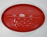 Vintage Red Oval Wood & Mother of Pearl Serving Tray 18 Inch Long