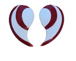 These vintage clip-on earrings feature a striking red and white swirl design in a bold teardrop shape, perfect for adding a retro pop of color to any outfit. Their glossy enamel-like finish and dramatic curved form capture the fun, playful spirit of 1980s statement jewelry.