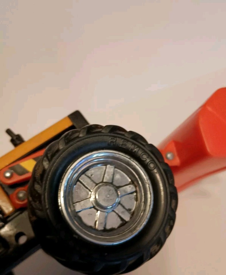 Vintage Remco Yellow/Orange Front-End Loader/Backhoe Pressed Steel Rubber Tires
