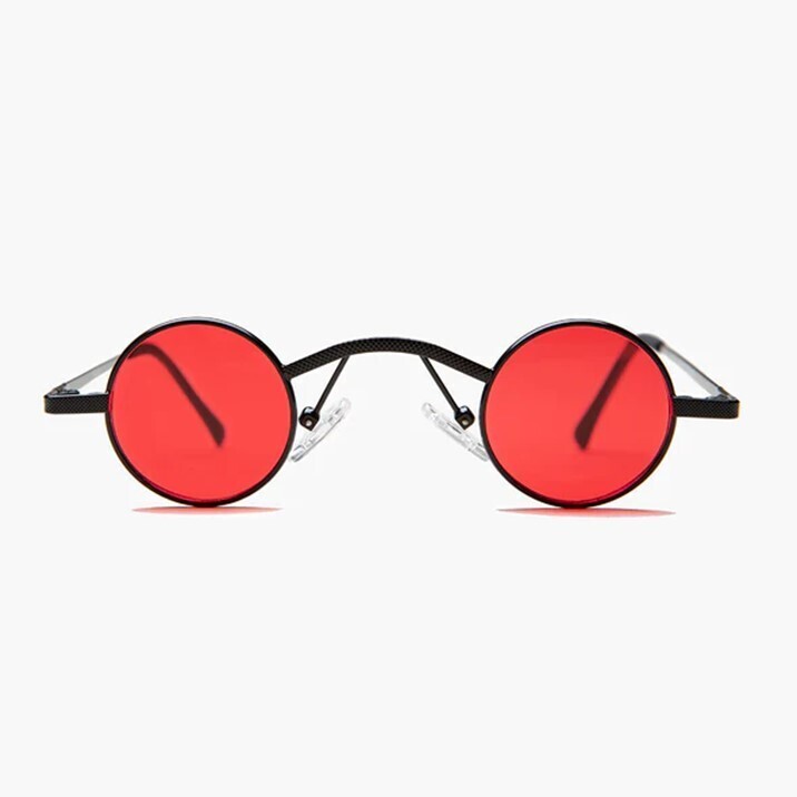 - Vintage Retro Steampunk Mini Round GOTHIC SUNGLASSES Adult Metal Frame-BLACK/RED