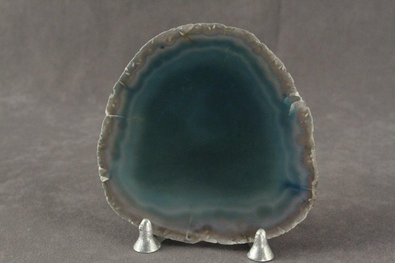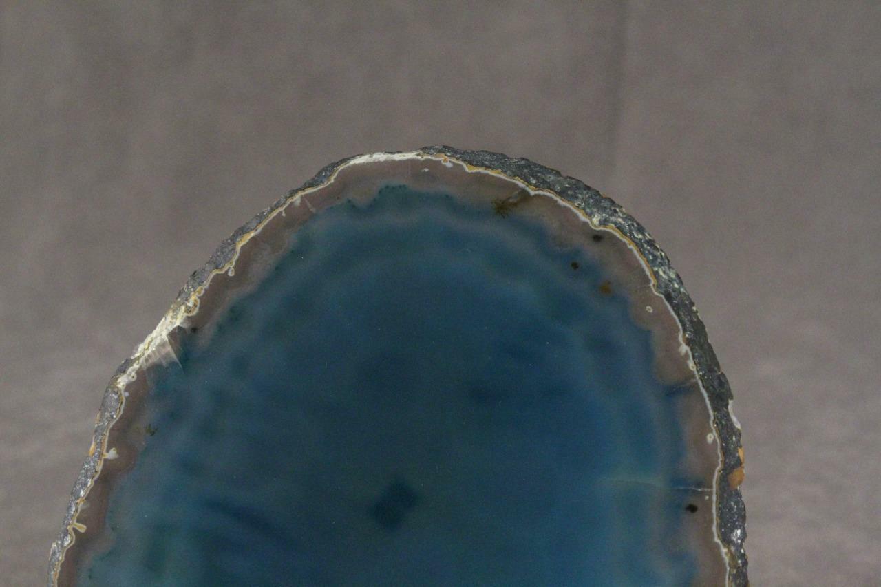 - Vintage Rock Display Specimen Blue Brown Striped Geode Agate Slice 5" X 5"