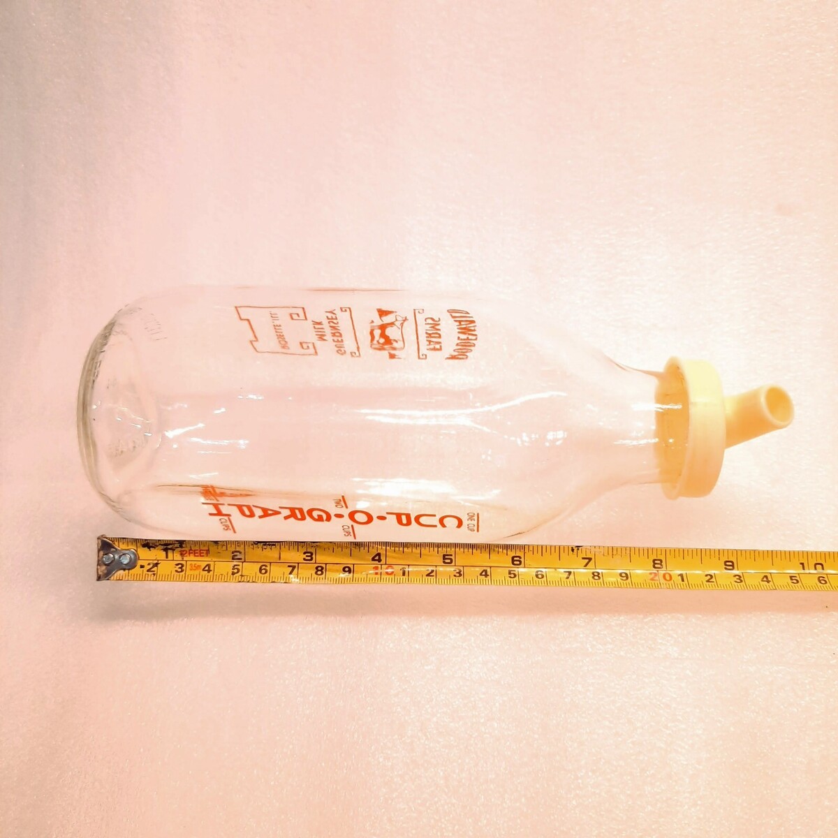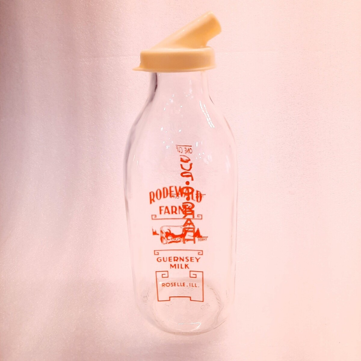 Vintage Rodewald Farms Guernsey Milk bottle with cap glass Roselle, IL pyroglaze
