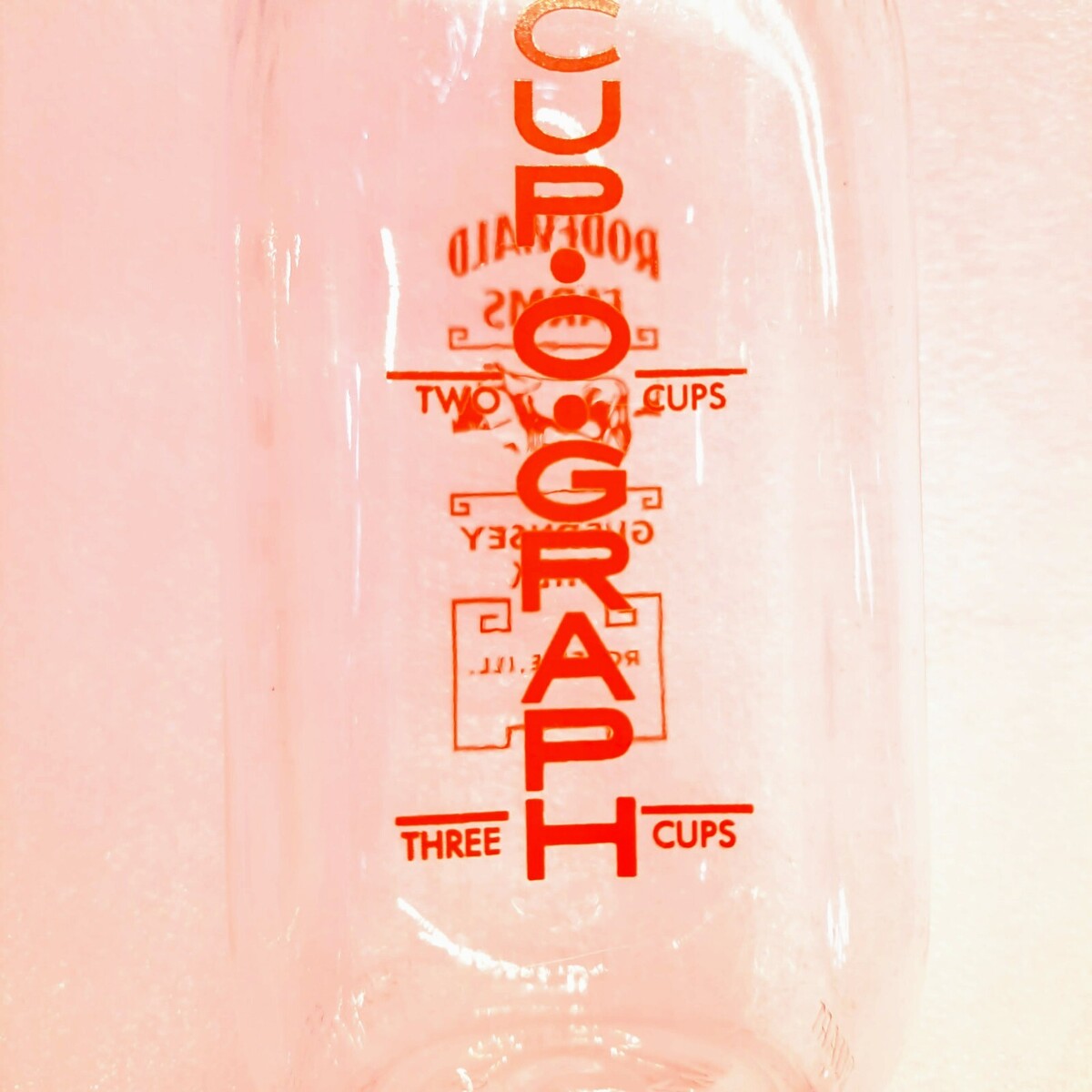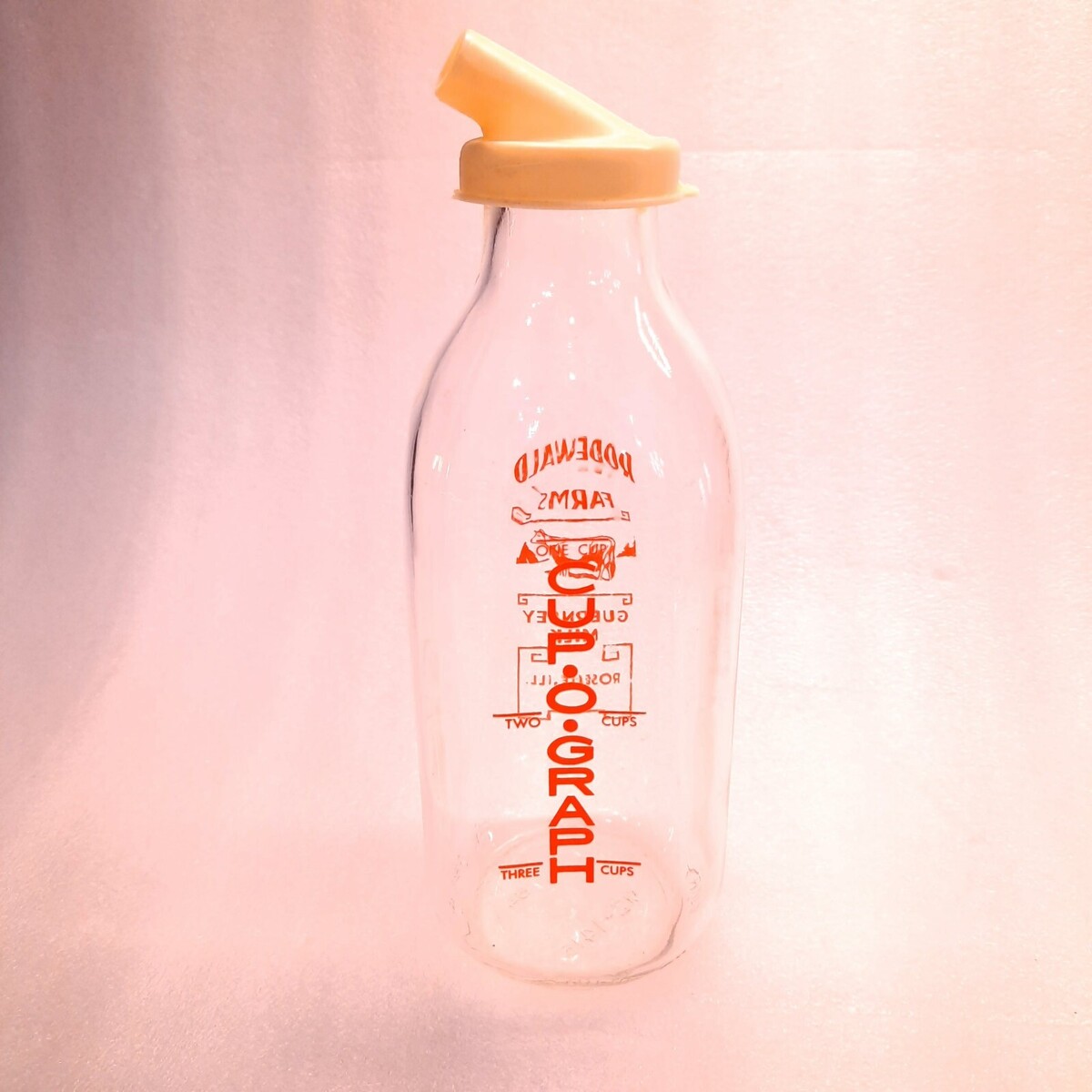 - Vintage Rodewald Farms Guernsey Milk bottle with cap glass Roselle, IL pyroglaze