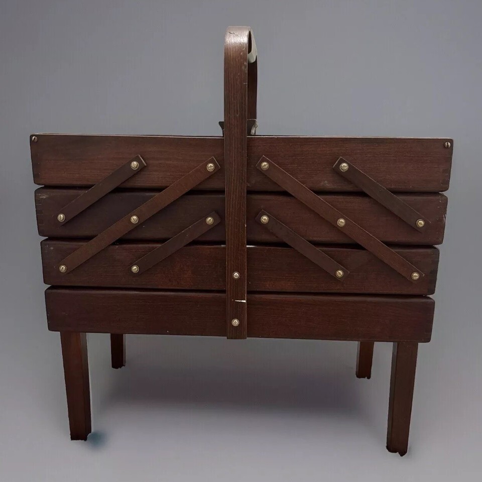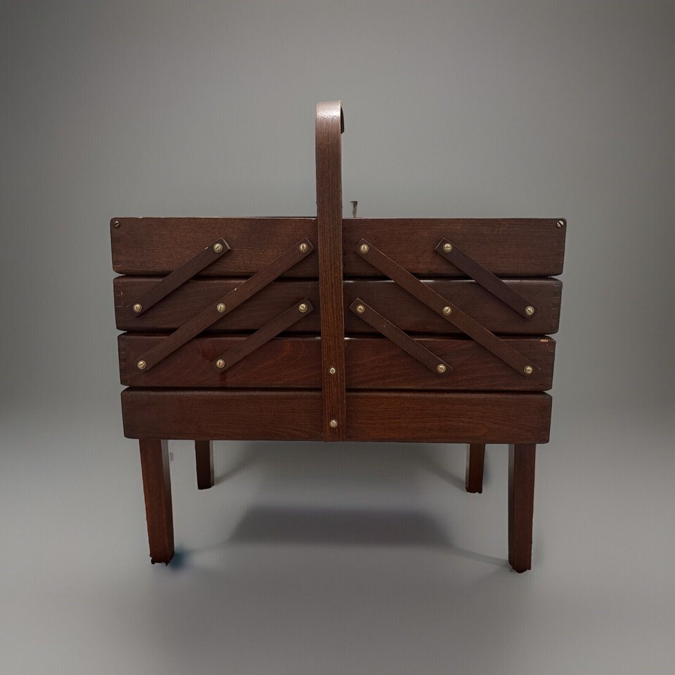 - Vintage Romanian Handmade Wooden Accordion Box Sewing Chest