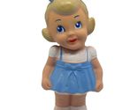Vintage Rubber Squeaker Toy Doll Blonde Girl In Blue Dress With Bow Collectible