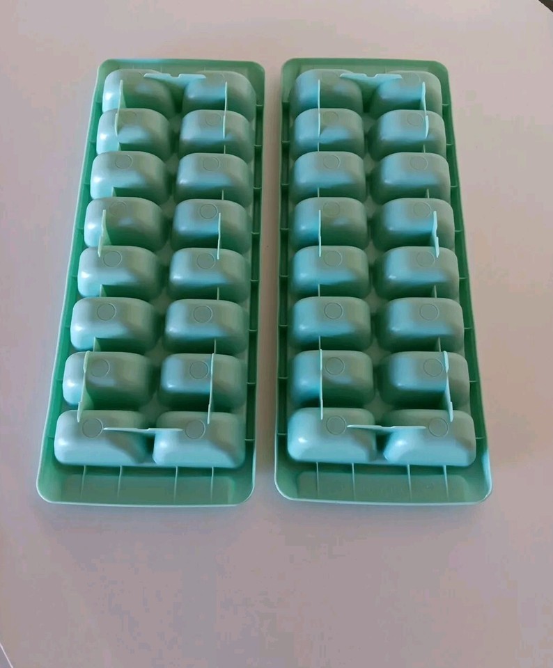 These 2 vintage Rubbermaid ice cube trays are a must-have for any kitchen. With 16 holes and a rectangular shape, it is perfect for making ice cubes of all shapes and sizes. The tray is made of durable plastic and comes in a lovely light blue color that will complement any decor.