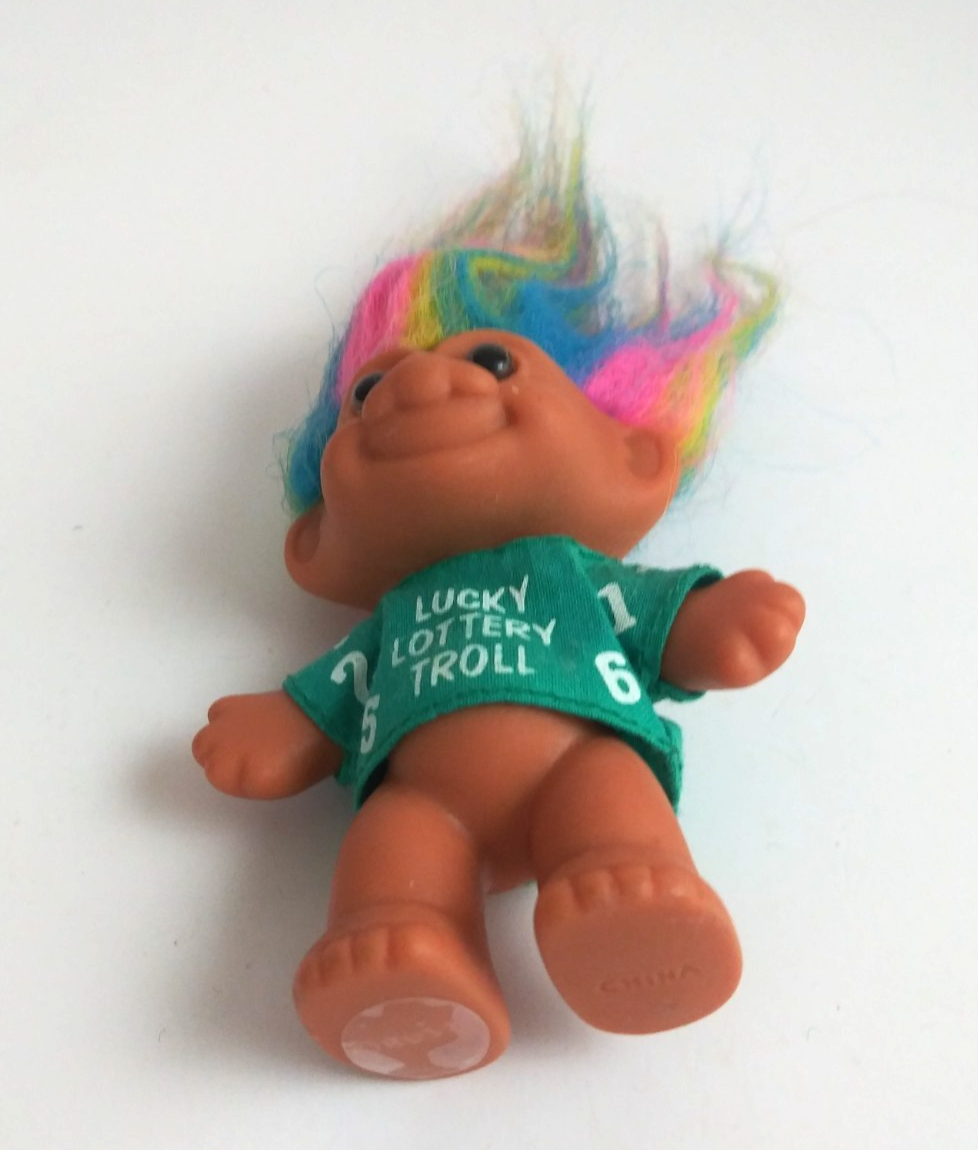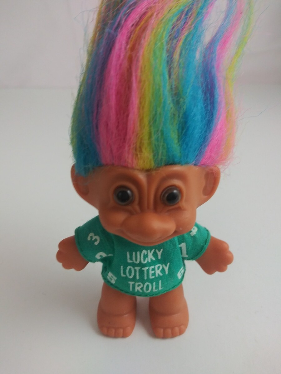 - Vintage Russ Lucky Lottery Troll 3" Rainbow Hair Troll Doll