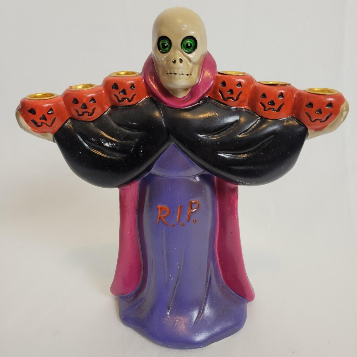 - Vintage Russ Phantom Of Lights Candelabra Skeleton Halloween Candle Holder