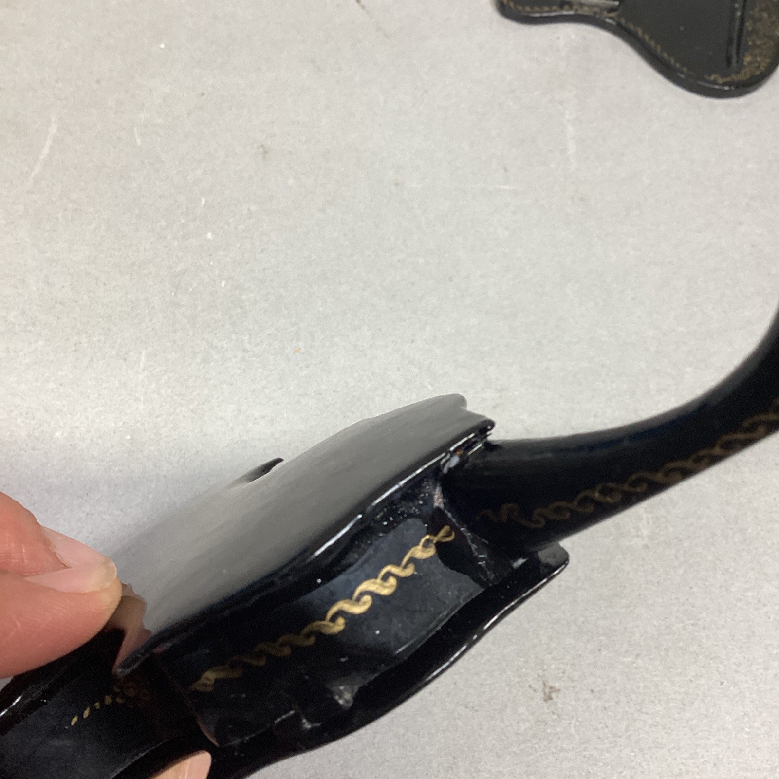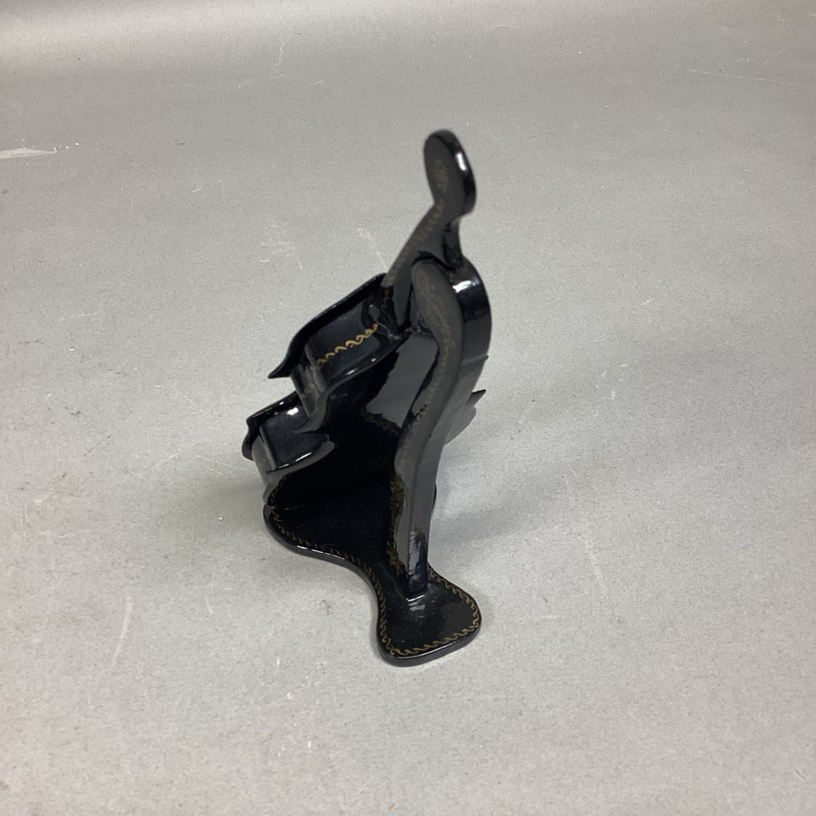 There is a repair done on this item. The very top of the cello has been repaired. You can slightly see the damage in the one picture. The cello measures 6.5x2.75?. The stand is 5x2.25?