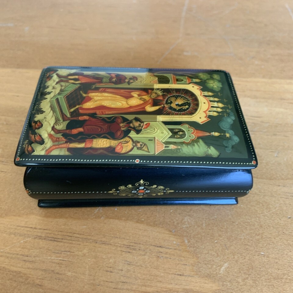 - Vintage Russian PALEKH LACQUER BOX 2.5" Hinged The Tale of the Golden Cockerel