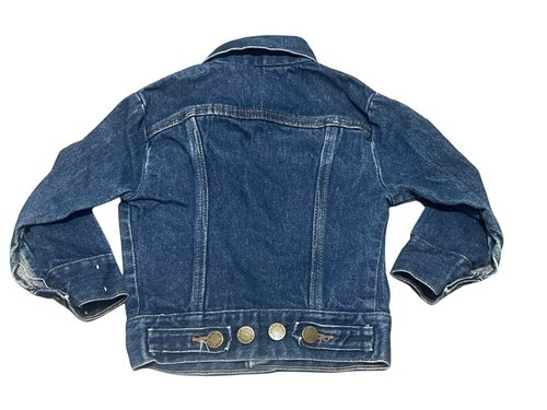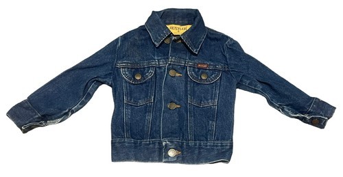 This vintage denim jacket from Rustler is a must-have for any stylish kid's wardrobe. It is an original piece and comes in size 3/4, making it a perfect fit for any kids unisex outfit. The jacket is made of high-quality denim material that guarantees durability and comfort. It is a great addition to any vintage-loving parent's collection.