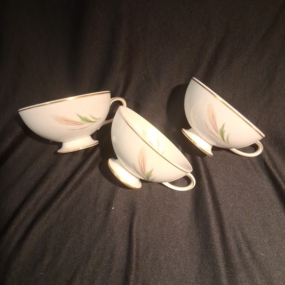 - Vintage SET OF 3 Treasure Chest Tea/coffee Cups Wheat Gold Trim BavariaGermany