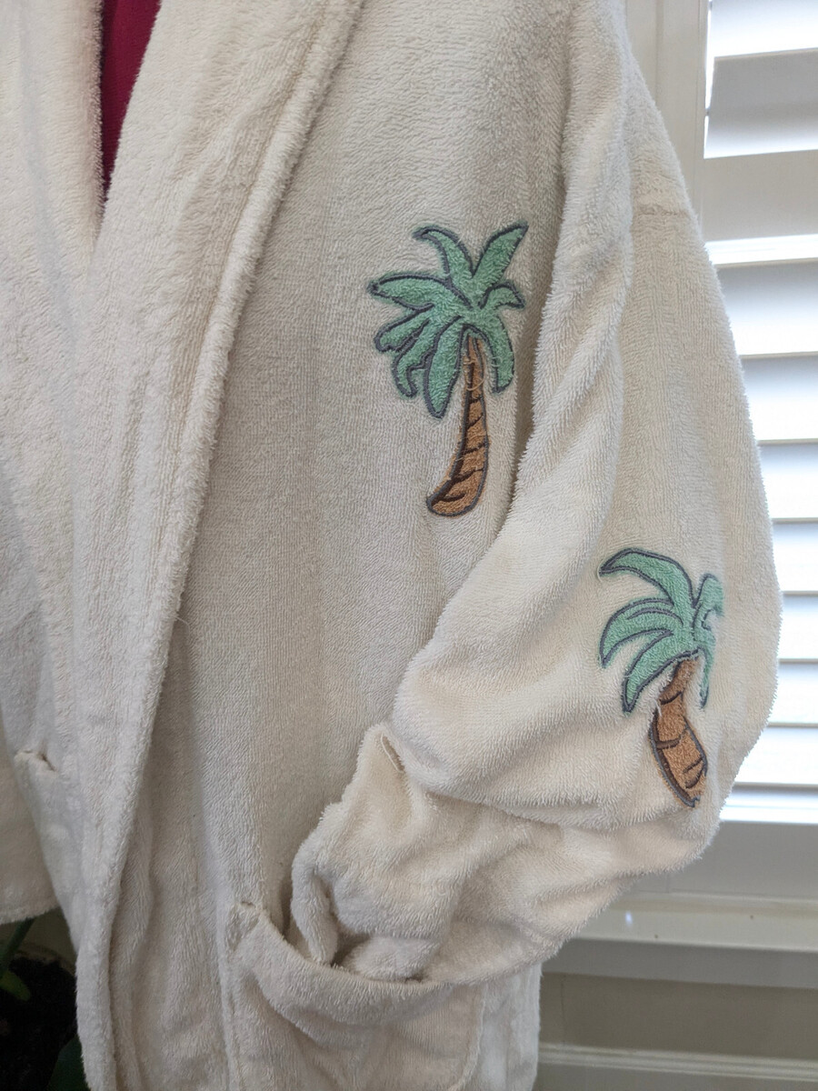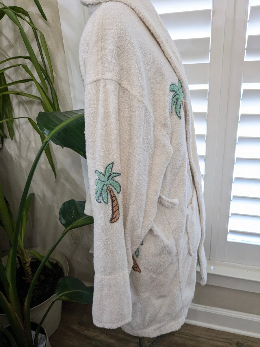 - Vintage SUNBAY LEISURE Womens Short Robe One Size Palm tree tropical Terry Towel