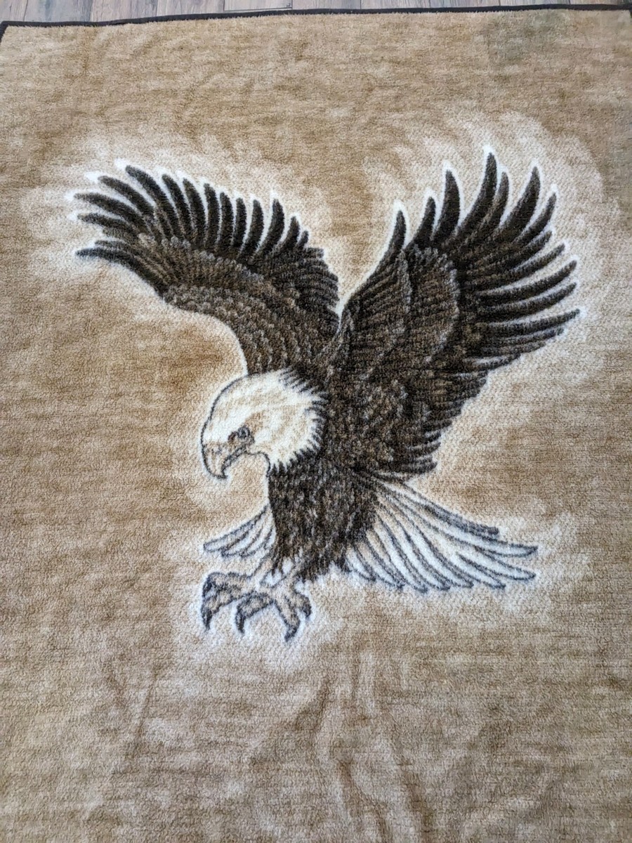 - Vintage Safari Weavers bald Eagle Blanket Biker Harley brown acrylic velour