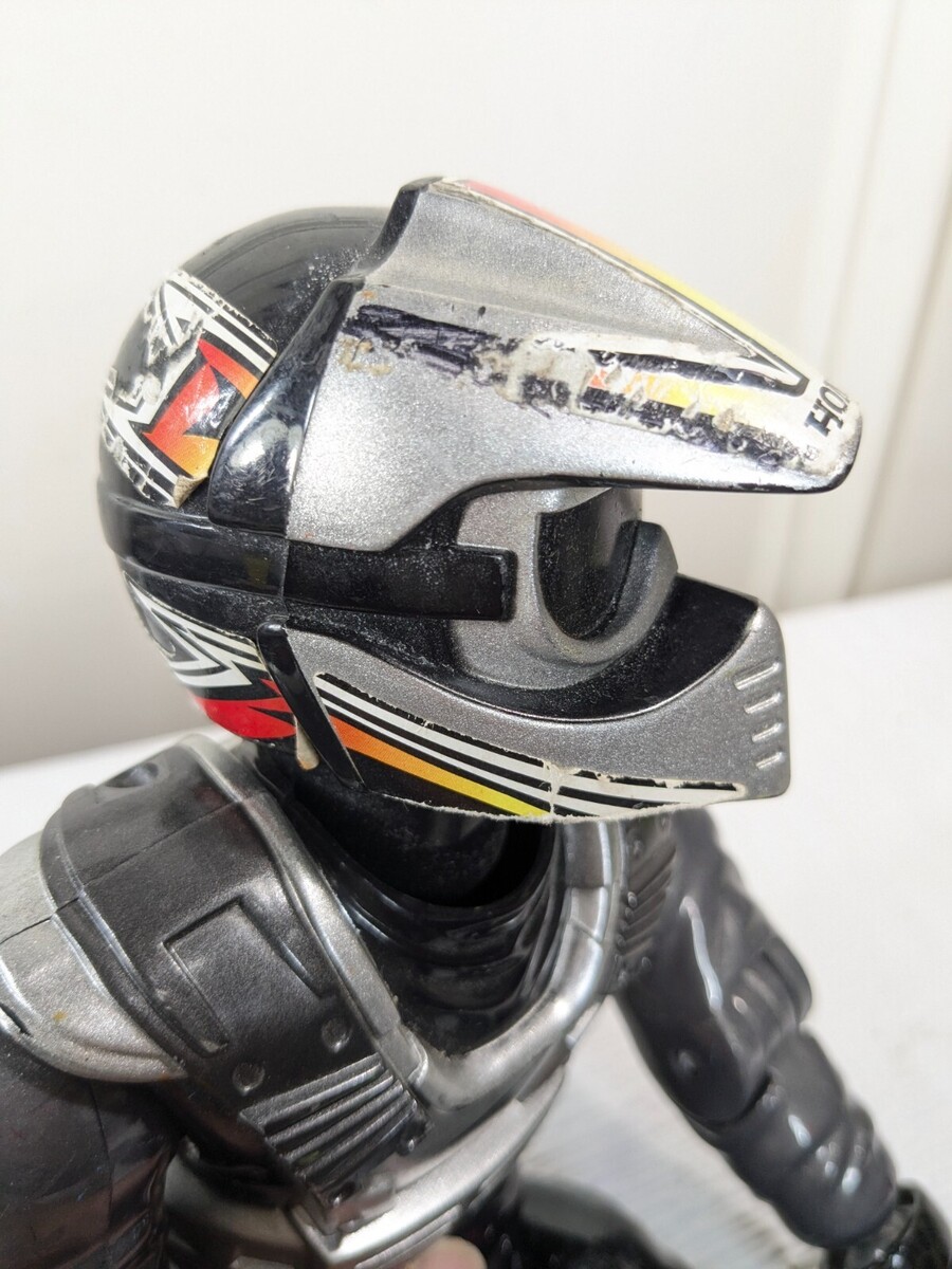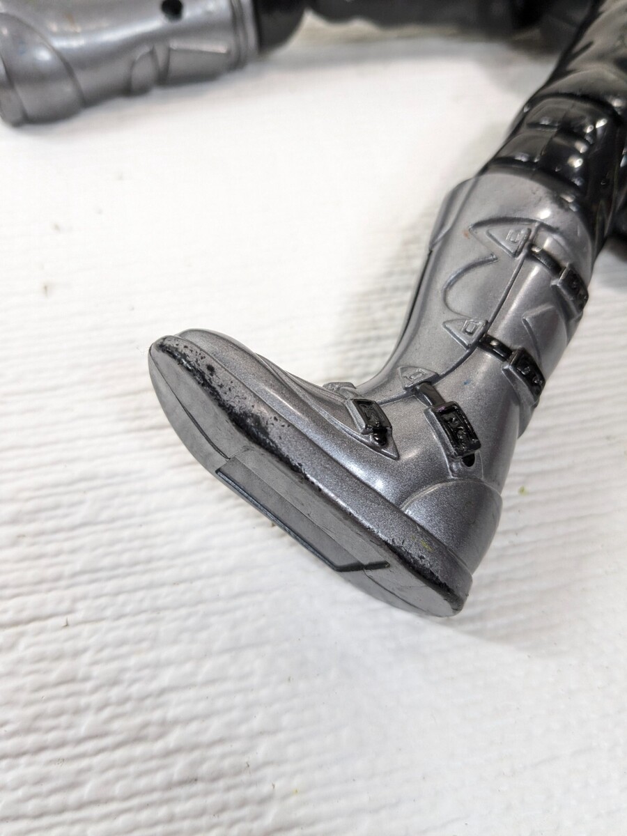 Paint wear/sticker wear/scuffs/scratches from use. See pics for details measurements. Fair to good condition. Gray color with poseable joints.