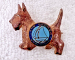 Vintage Scotty Coppery Tone w Lake George New York Enamel Center Brooch 1 1/4 x 1 1/8 inches in good shape