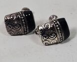 Vintage Screw Back Earrings Black w/ Silver Tone Block Style .65 In Decorative