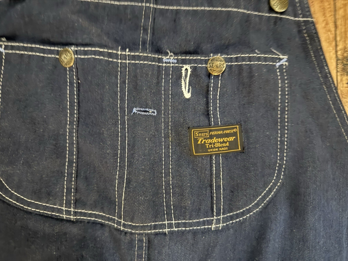 - Vintage Sears Tradewear Denim Overalls 36x32 Union Made Perma Prest Tri Blend