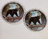 Vintage Serving Trays (2) 11” James Artig Black Bear Painted Tin Metal 1980's