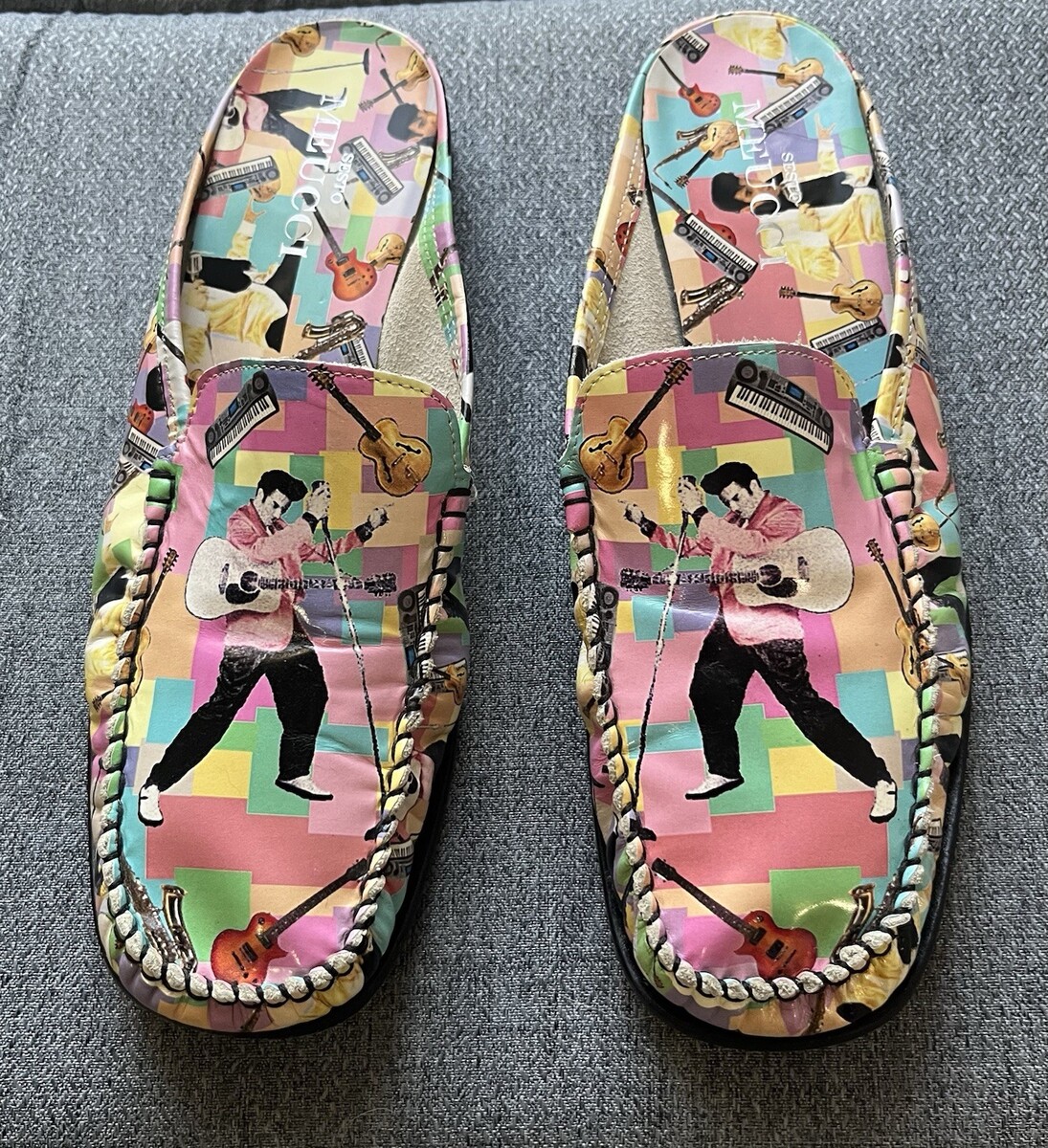 - Vintage Sesto Meucci Italy Leather Women’s 7.5 Elvis Rockabilly Music Art Mules