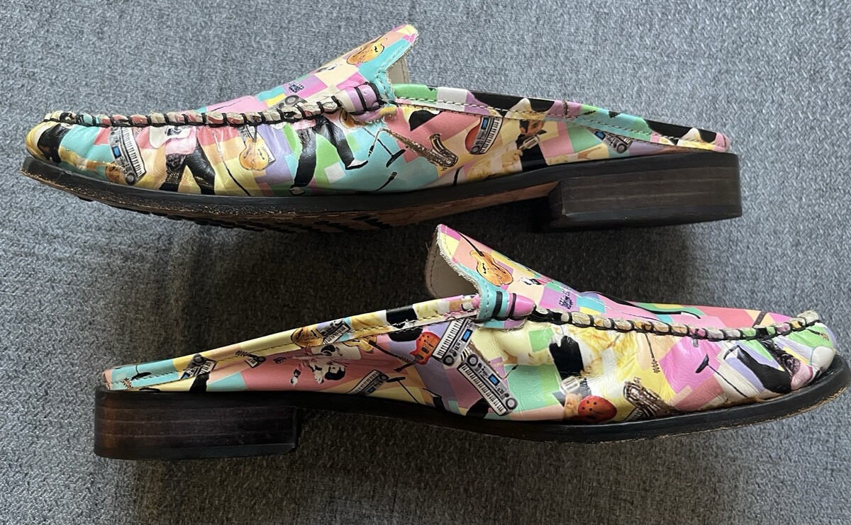 Vintage Sesto Meucci Italy Leather Women’s 7.5 Elvis Rockabilly Music Art Mules