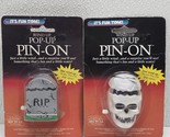 Vintage NOS Set Of 2 Fun World Halloween Wind-Up Pop Up Pins - Skull Gravestone Headstone. Images show actual set that will ship.
