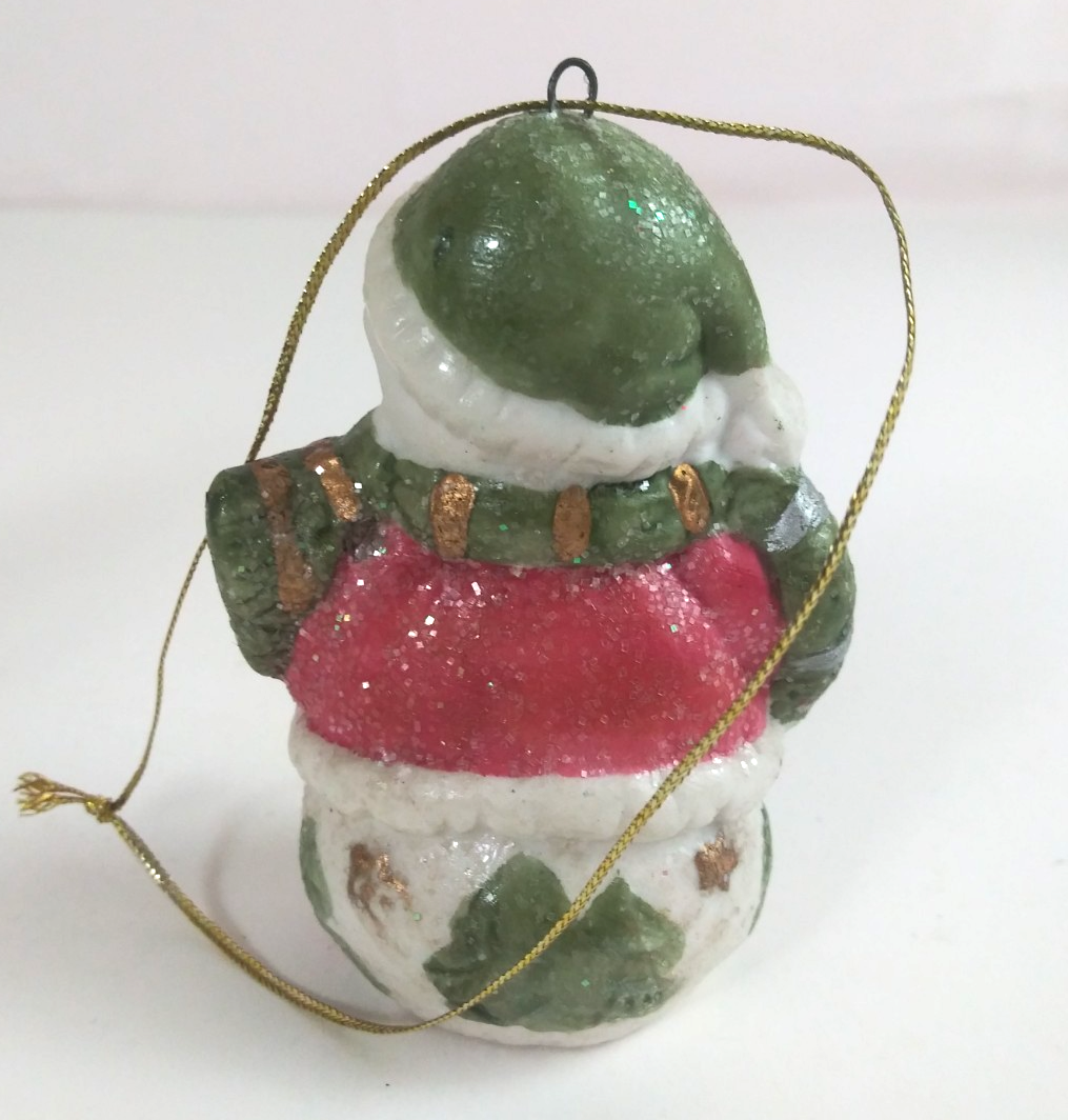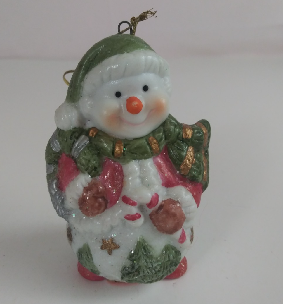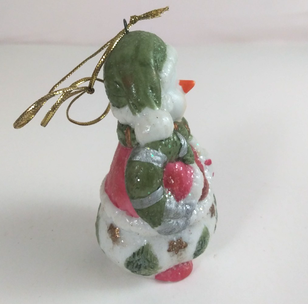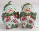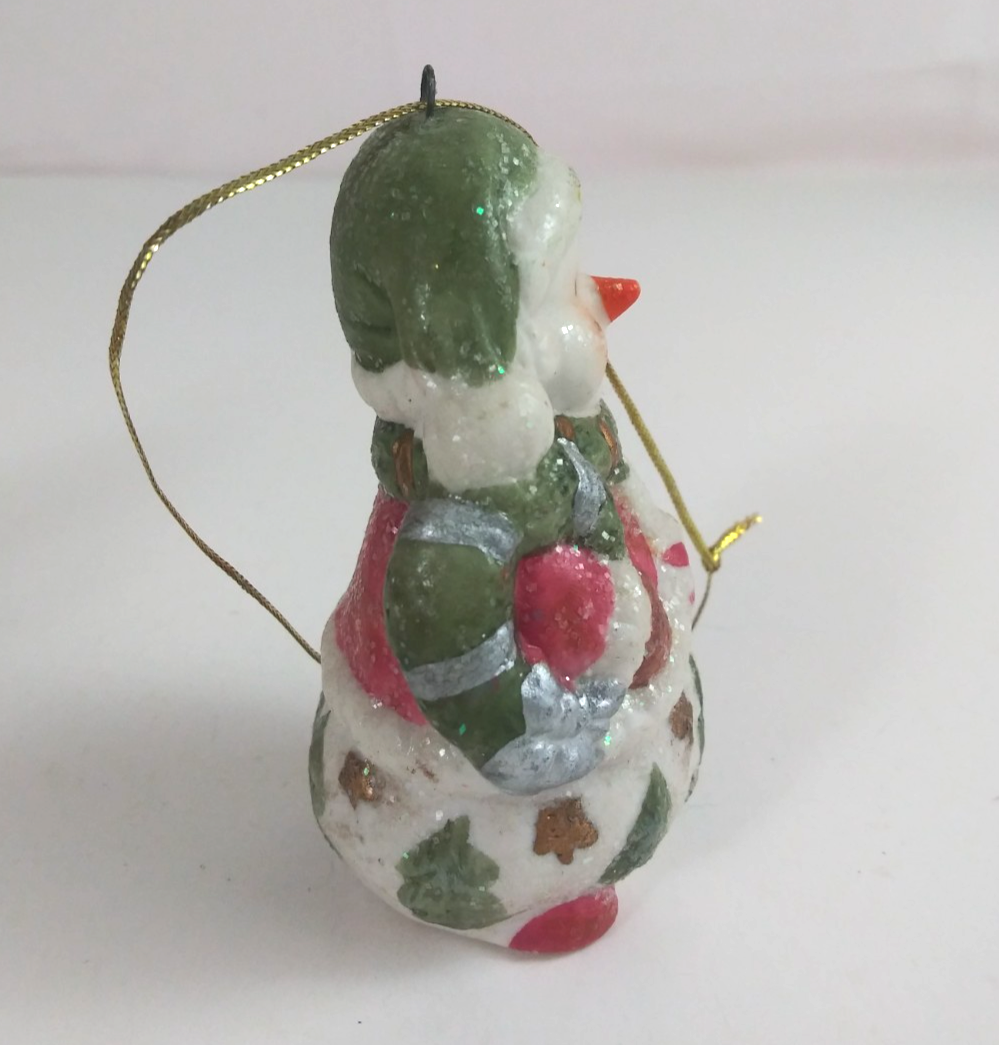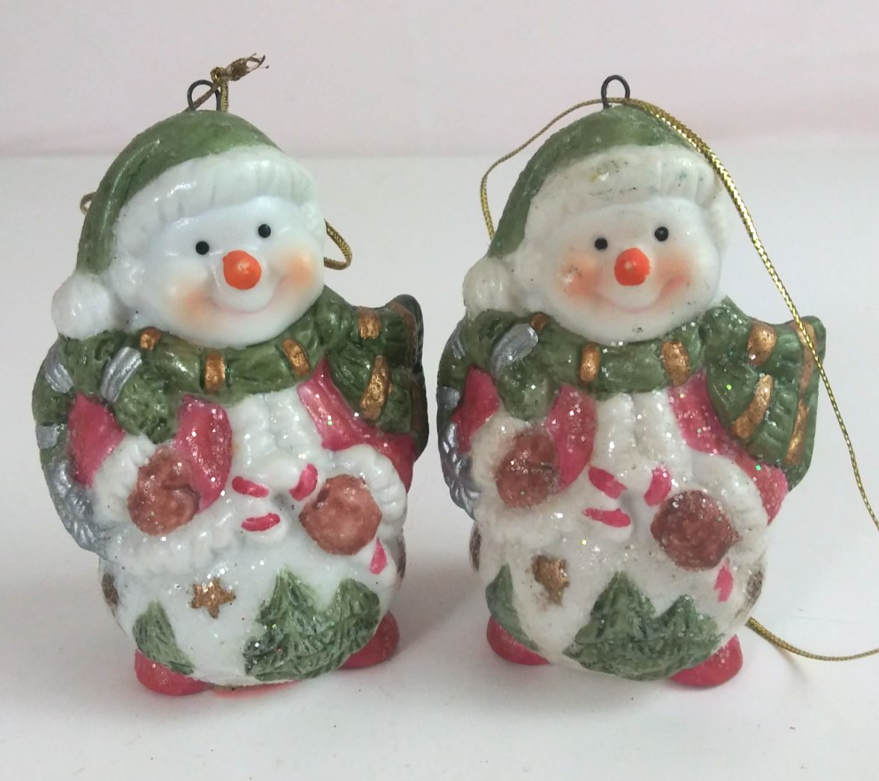 - Vintage Set Of 2 Glittery Snowmen Holding Candy Cane & Wreath 3.25" Ornaments