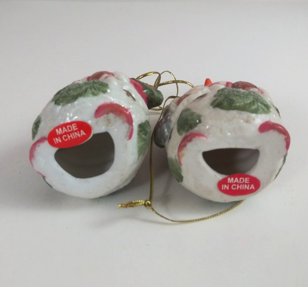 Vintage Set Of 2 Glittery Snowmen Holding Candy Cane & Wreath 3.25" Ornaments