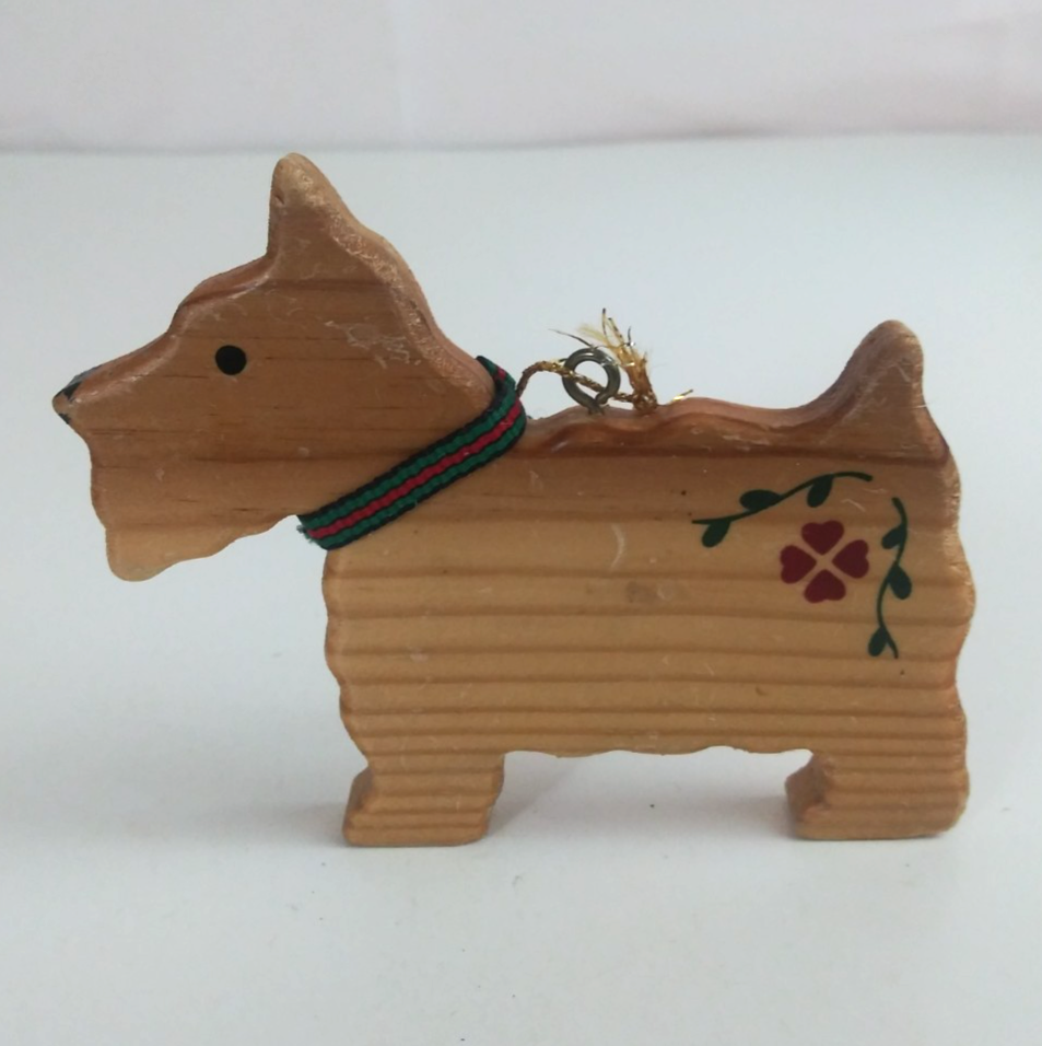 - Vintage Set Of 2 Wooden Hand Painted Scottish Terrier Dog & Cow 3" Ornaments