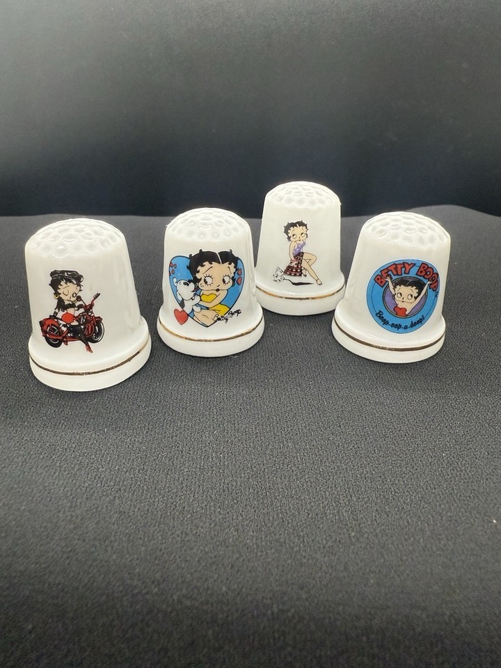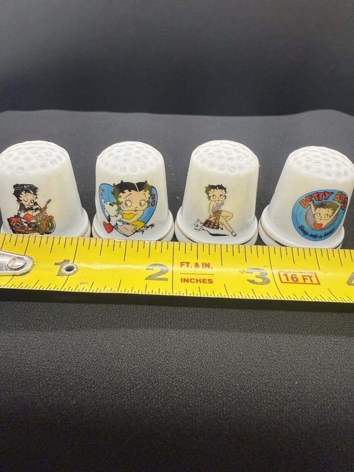 - Vintage Set of 4 Ceramic Betty Boop Thimbles 1998 King Features Syndicate Inc.