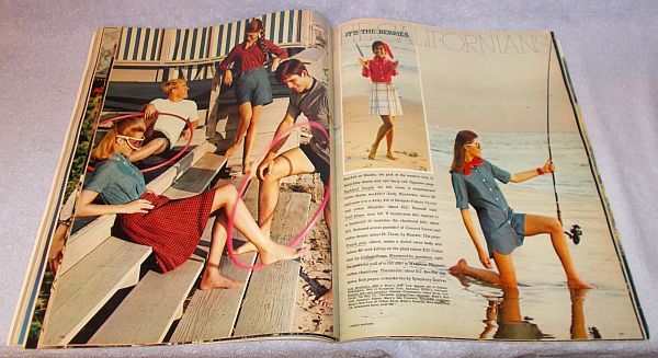 In This Issue: California the fun loving fashion scene, spring fling of new hairdos, would a broken home break you, The career where the action is, Shyness can be conquered, Must nice guys finish last, Many Departments, Much period in color advertising for the young ladies, Heavy over size magazine, 250 pages