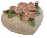 - Vintage Seymour Mann Bone China Heart Shaped Trinket Box with Porcelain Flowers