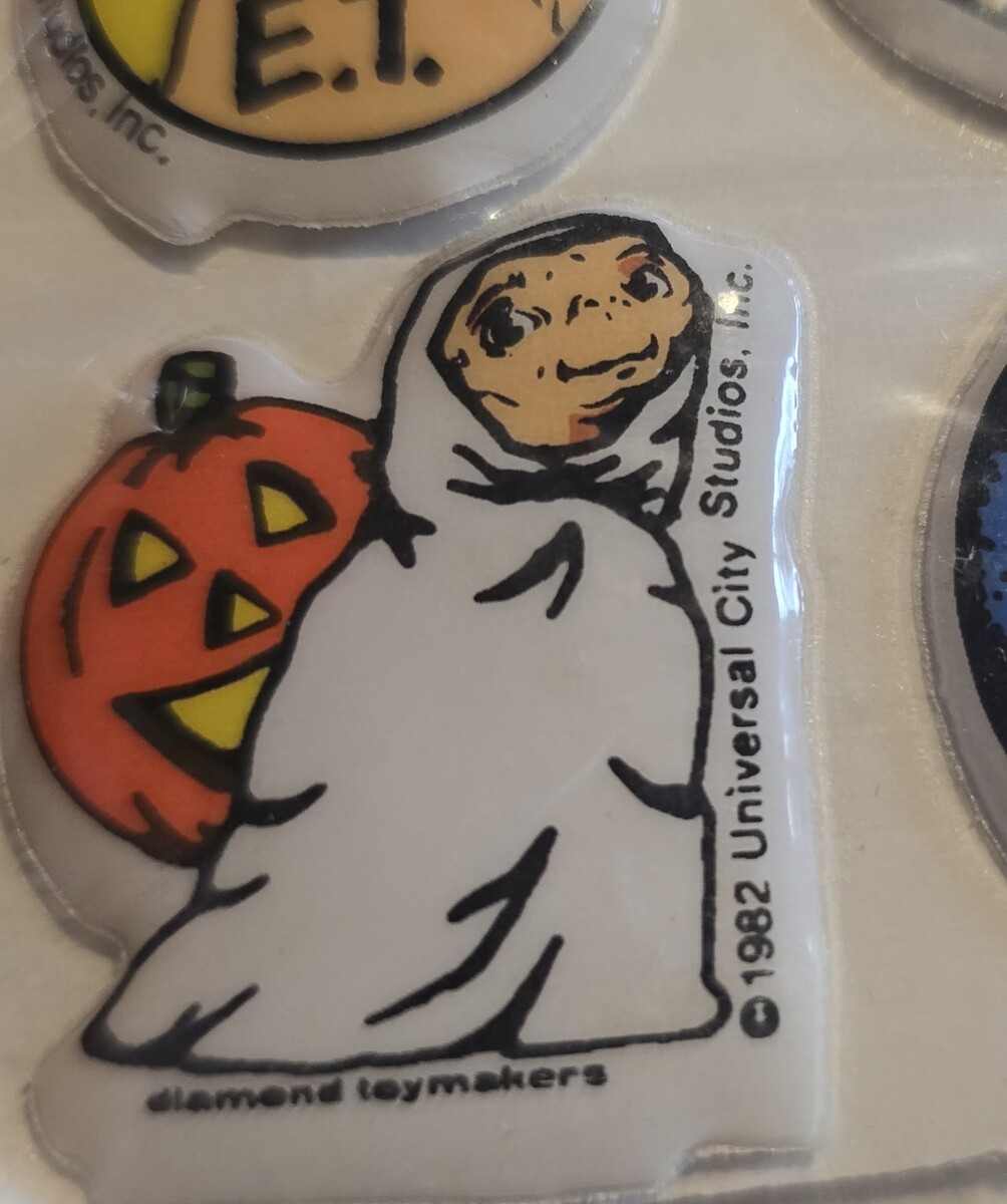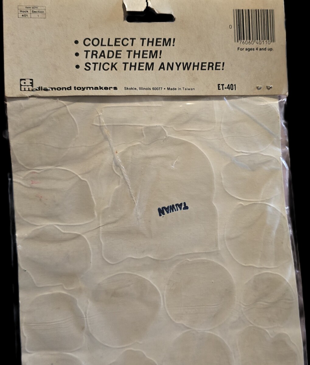 The product is a vintage sheet of puffy stickers featuring an Extra Terrestrial design, likely dating back to the 1980s. Specifically, it includes a unique sticker labeled "ET-401 Diamond Toymakers." This rare and nostalgic collectible item would appeal to fans of retro and mid-century memorabilia, especially those interested in geeky or sci-fi themed items from the 1980s era.